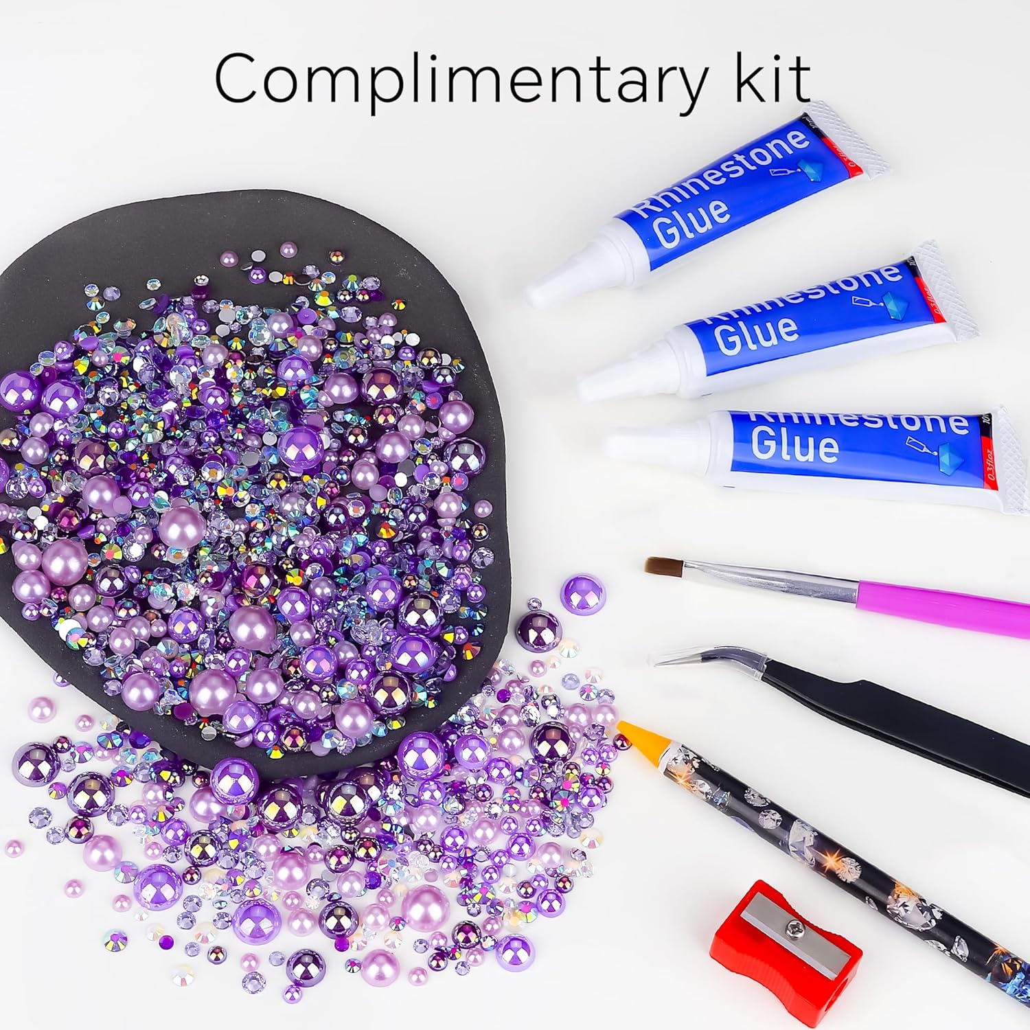 - What You Will Receive: 60g(30g*2)mixed size flat back pearls and rhinestones. 3*Rhinestone Glue. 1* wax pencil for rhinestones. 1*Pencil sharpener(color random). The mix half round pearls and rhinestones can make more beautiful handicrafts for your friends, parents, yourselfs on any festivals.If you need a mixed size pack of pearl rhinestones