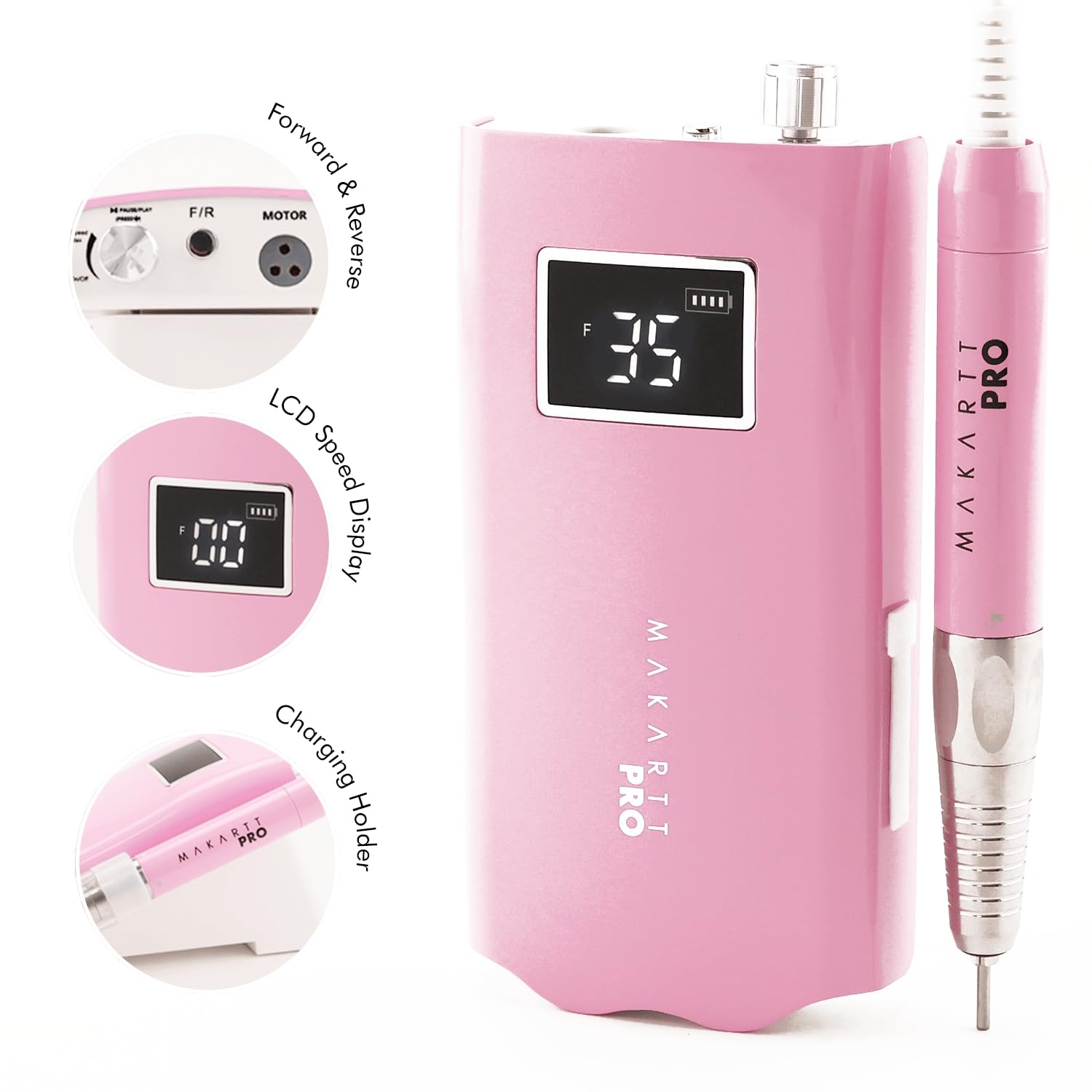 LuxuriaPro 35000 RPM Professional Nail Drill - 85W Brushless Motor | High Torque | Quiet & Vibration-Free | Portable, Rechargeable & Cordless Nail Drill for Technicians - Baby Pink