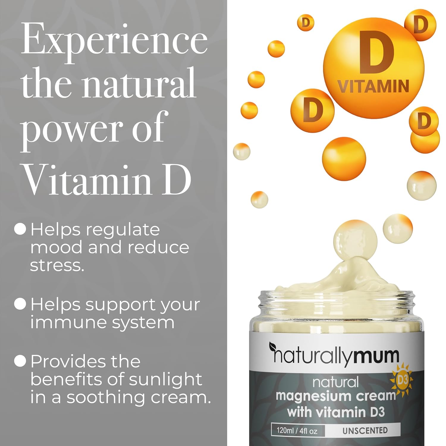 Magnesium Cream with Vitamin D3 [4 Fl Oz] - Magnesium Calm Cream and Vitamin D Lotion - Magnesium D3 Cream - Calming Cream Magnesium and Vitamin D - Turmeric & Arnica Cream - Unscented