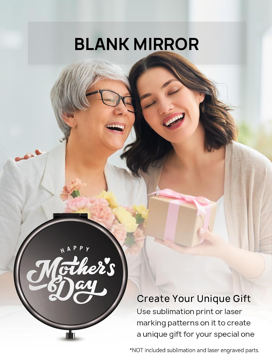 - BLANK MIRROR: DIY friendly. Use sublimation print or laser marking patterns on it to create a unique gift. Customize gifts for your mom, father, daughter, friend, wife, etc., to make them feel special