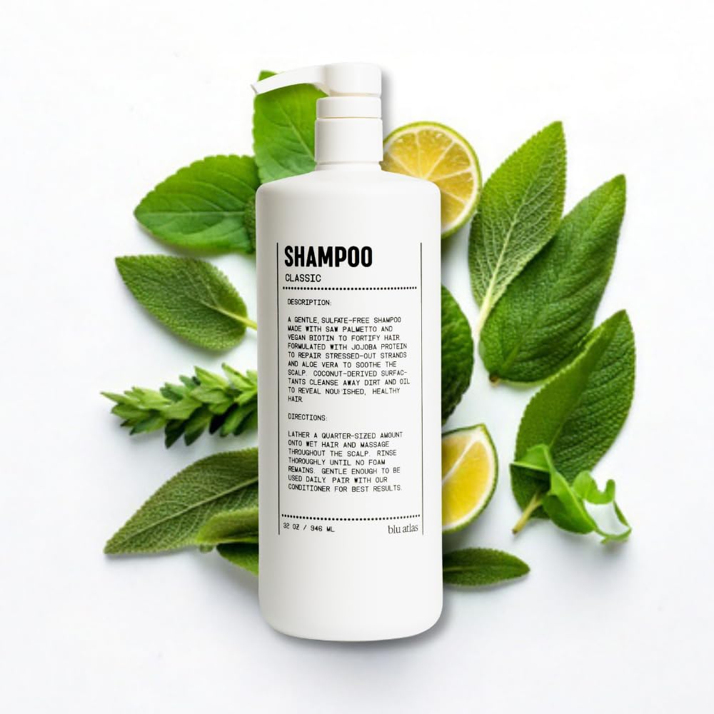 Blu Atlas Men's Natural Shampoo – Organic, Sulfate-Free, Paraben-Free – Deep Cleansing & Hydrating – Classic Scent (Bergamot, Sage, Patchouli) – Made in America– 32 oz