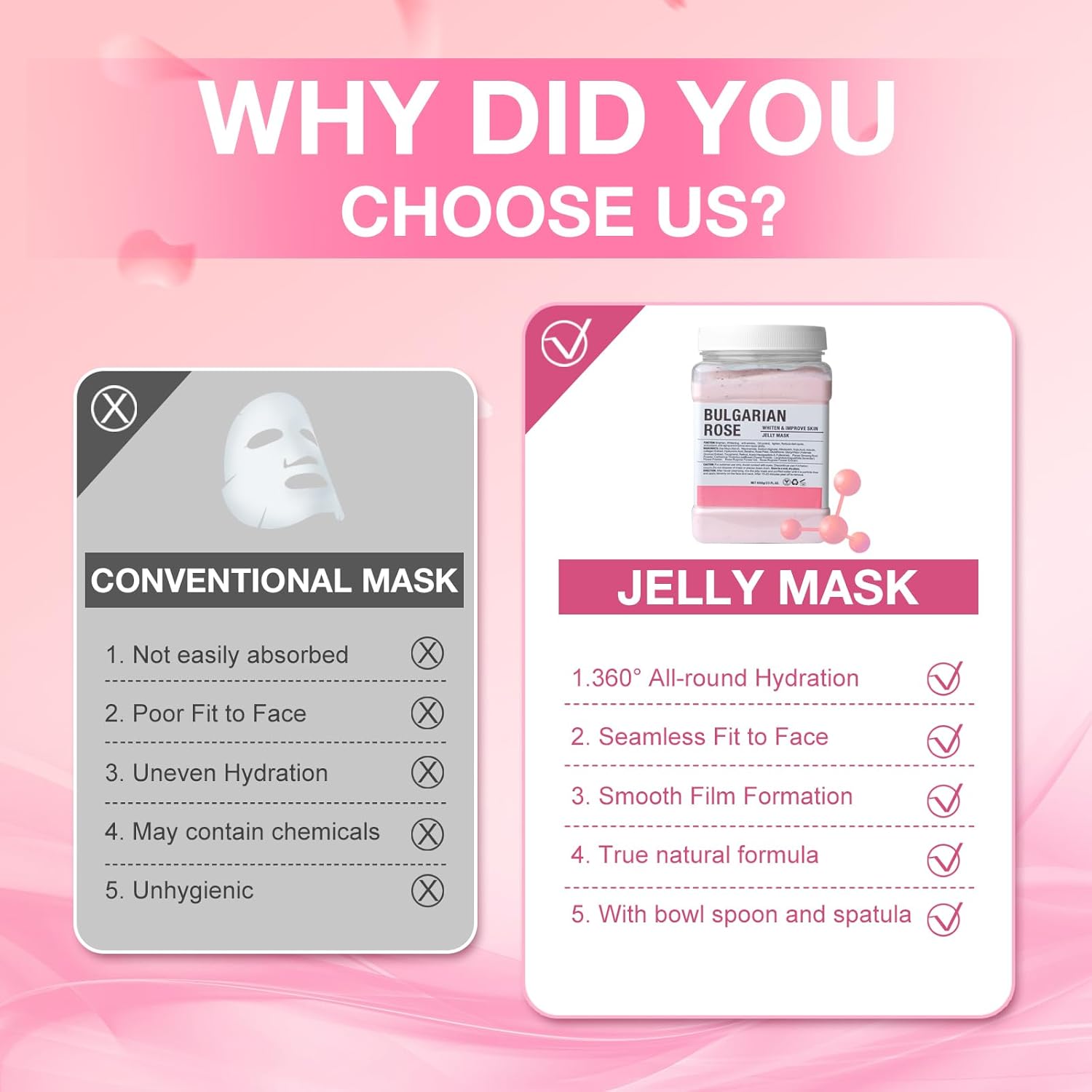 - ăPURE NATURAL JELLY FACE MASK SKIN CAREă This jelly mask is mainly made of hyaluronic acid and rose petal extracts, free from harmful chemicals and additives, will not harm your skin. The jelly masks for facials professional will let you every inch of your skin experience natural maintenance with confidence, ensuring that your skin receives only the best care.