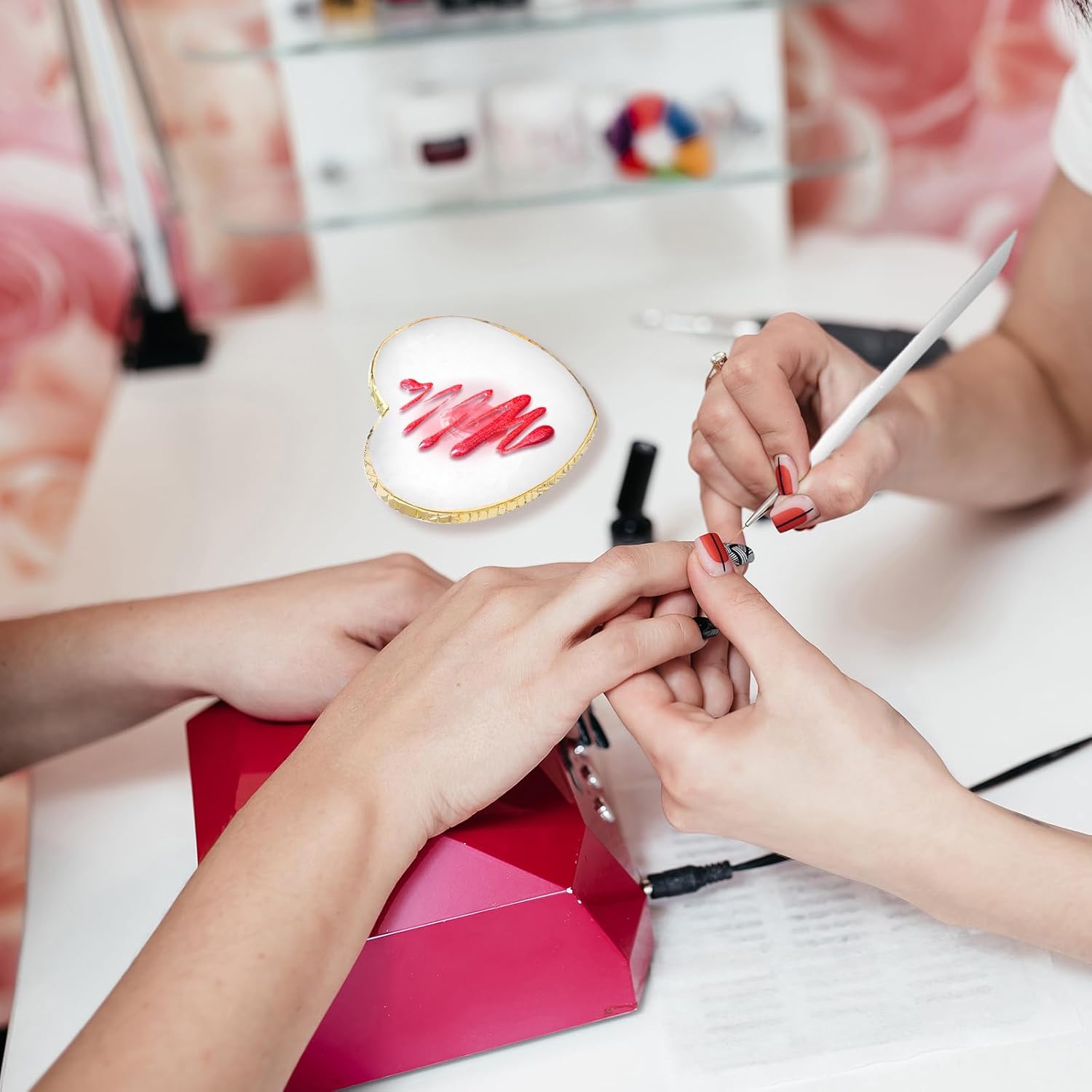 Resin Nail Art Palette, Polish Color Mixing Plate Gold Edge Nail Holder Nail Mixing Palette Mixing Tools Display Board Heart Shaped Color Makeup Foundation Cosmetic Mixing Tools (White)