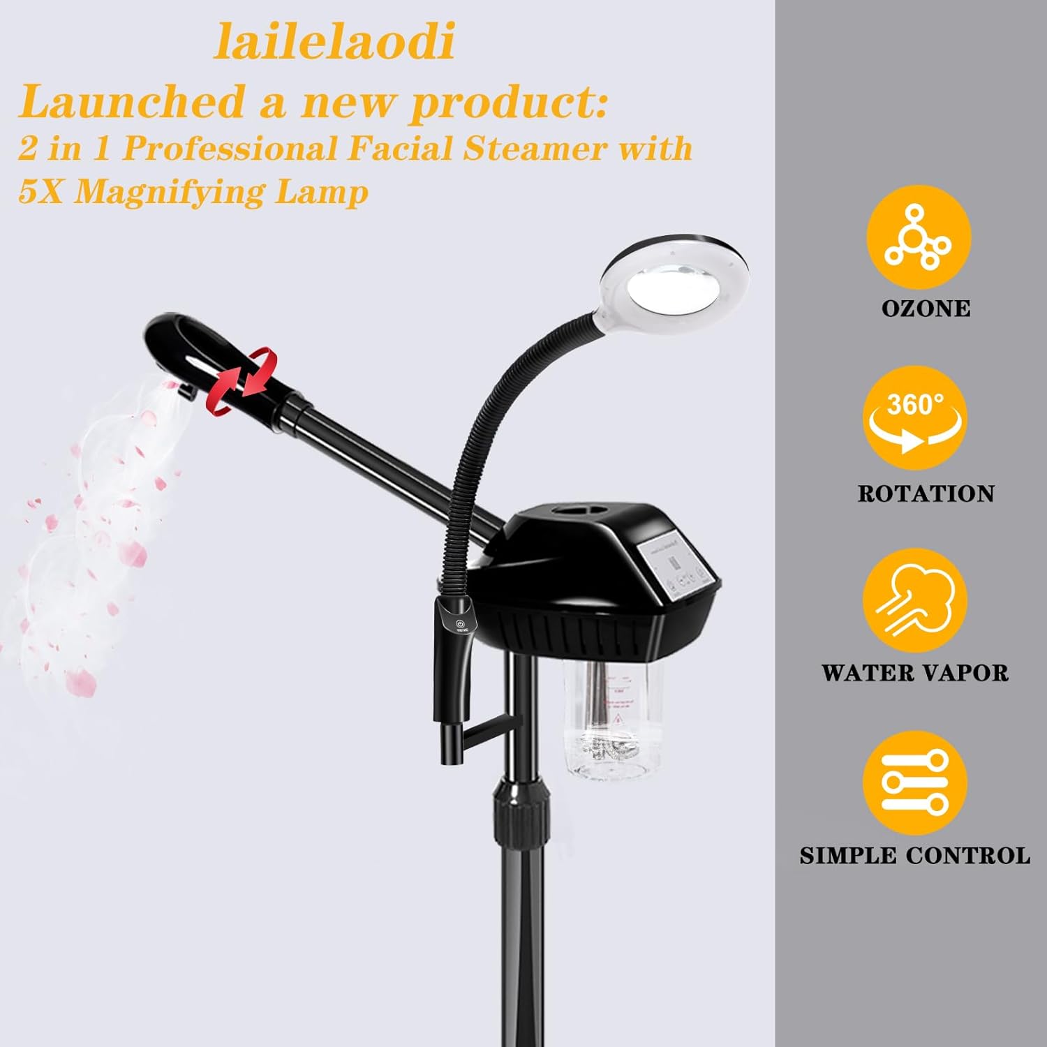 - 【Removable Standing Facial Steamer】 Stand Facial Steamer with a cross-footed load-bearing base, Good load bearing, smooth movement, Use of lightweight and high-strength materials.