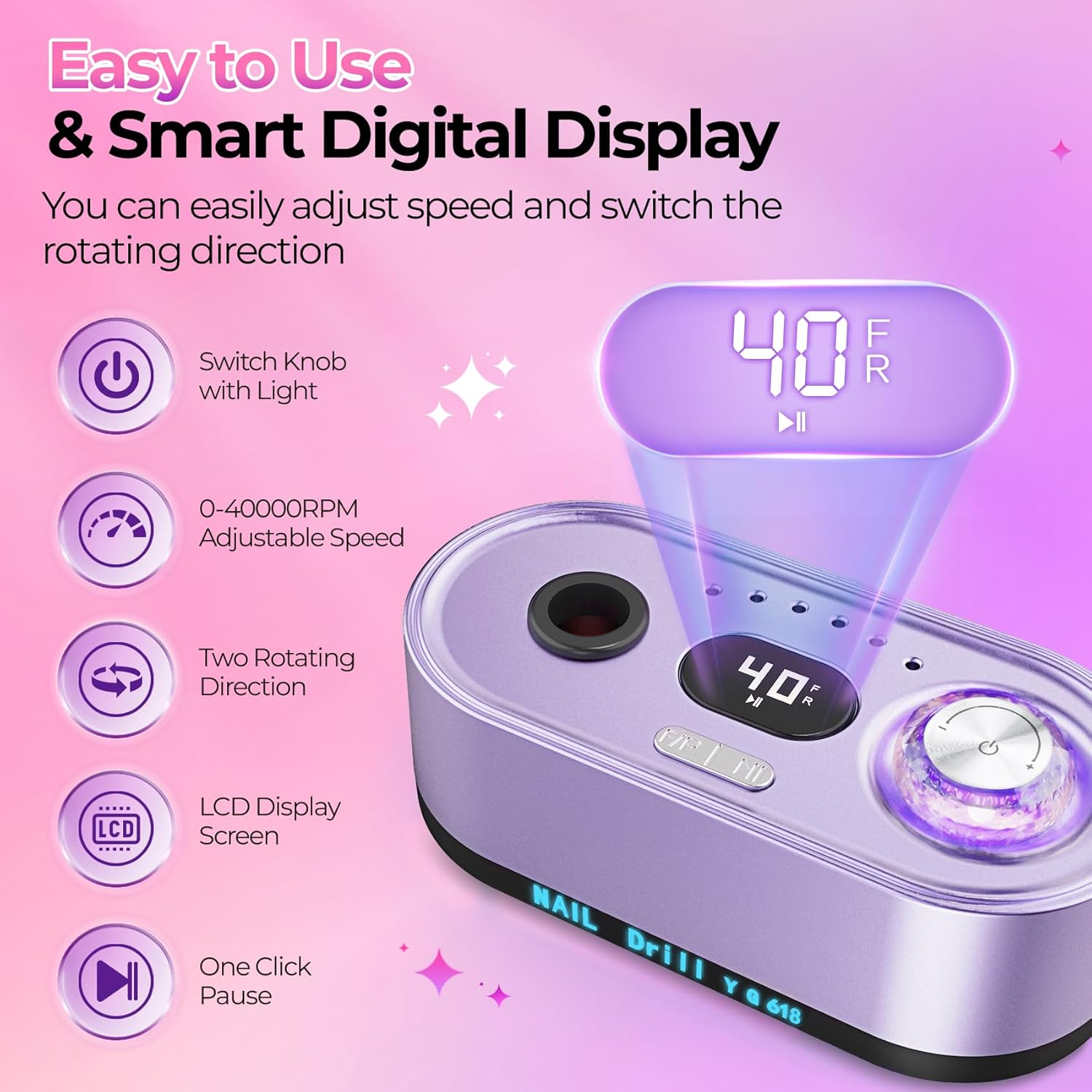 - More Powerful and Stable Electric Nail Drill: The GOLEEXU electric nail file is perfect for various nail care tasks. The speed can be as high as 40,000 RPM, you can adjust the speed with precision by simply rotating it easily. From pre-care to removal and shaping, it handles nail extensions, gel polish, tips and dead skin