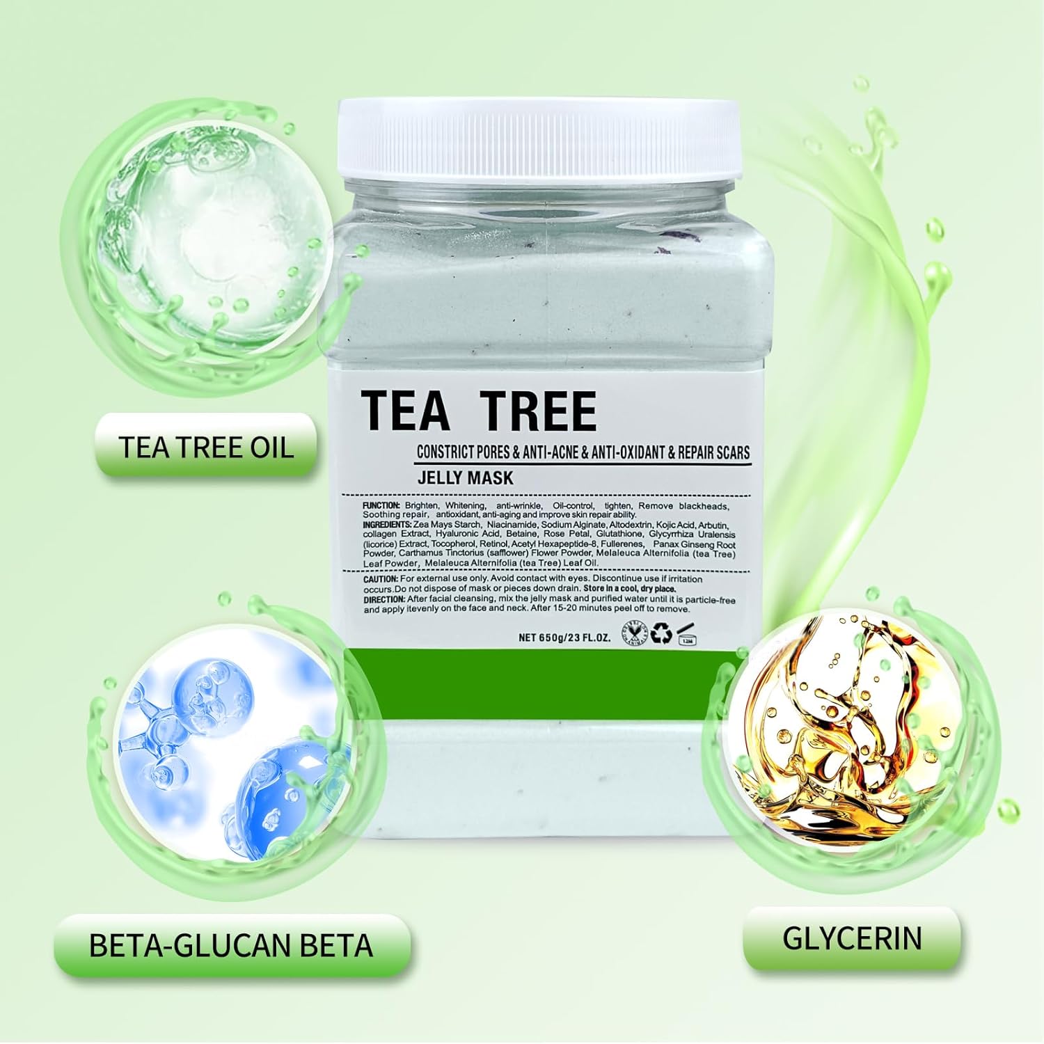 Jelly Mask for Facials Professional, Hydrating & Moisturizing Peel-Off Natural Gel Face Mask SkinCare, Professional Spa Use Jelly Face Masks, Deep Hydration & Glow 23 Fl Oz (Tea Tree)