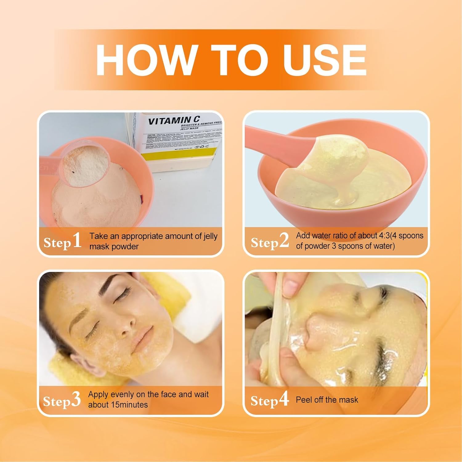 - ăEXPERIENCE PROFESSIONAL SPA AT HOMEă Mix the jelly mask powder and water in the bowl in a 4:3 ratio until combined. If you feel that it is too thin and it will slide down your face, you can add more powder. If you feel that it is too dry to fully absorb, you can add some water. The gel mask for face is fast acting, does not drip, and need 20 minutes of regular use for lasting results. With this peel off hyaluronic acid powder, you can experience a comfortable and undisturbed professional spa experience at home. It is more cost-effective than beauty salons.