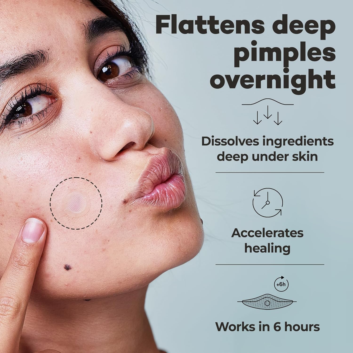 - Deep Penetration. Our pimple patches have 173 innovative self-dissolving microcrystals. They dissolve acne-fighting active ingredients deep under your skin. Our acne patches have Niacinamide, Hyaluronic Acid, and Centella Asiatica. This cystic acne patch is great to use overnight.
