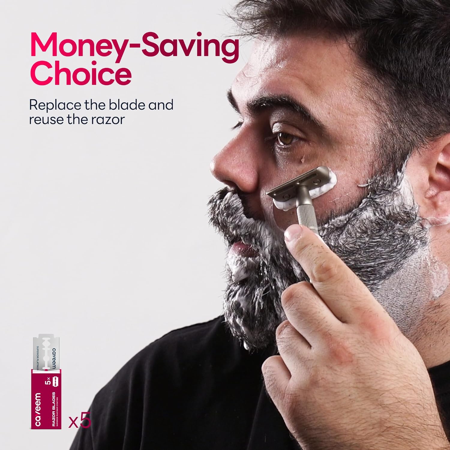 - YOUR SHAVING SKINCARE WITH CAVEEM : Our double-sided razor is crafted from upscale, corrosion-resistant metal, ensuring durability and long-lasting use. The stainless steel blades wrapped in wax paper offer better safety, smoother and convenient shaving