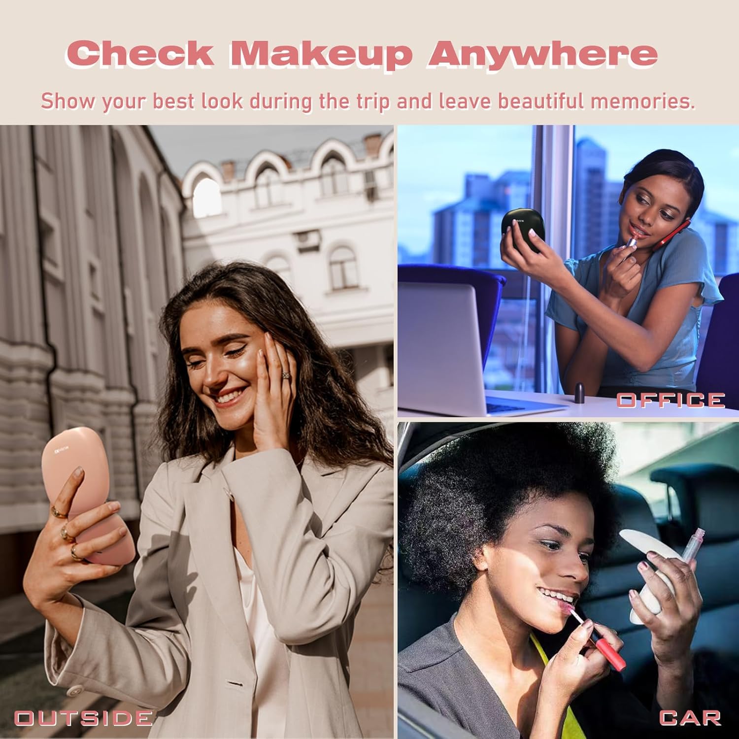 - 【VERSATILE AND THOUGHTFUL - FOR TRAVEL, GIFTING, AND DAILY USE】This portable travel mirror with light is the ultimate travel accessory for women, a thoughtful gift for her, and a daily essential for commuters. Whether it’s for holidays, birthdays, or everyday use, this mirror is a best gift idea that combines practicality and style