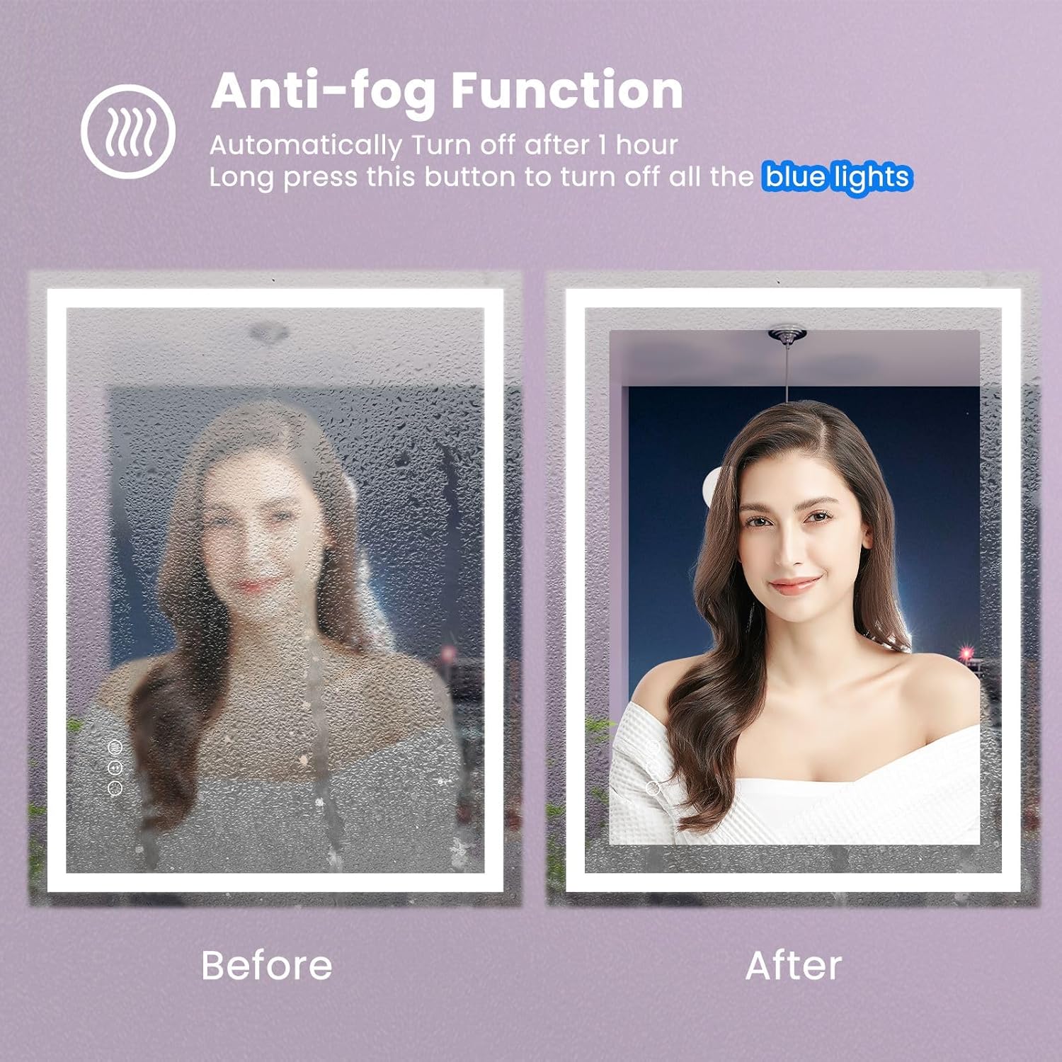 Amorho LED Mirror for Bathroom 28X36 Inch with Backlight and Front Lit, Fogless Mirror for Wall Mounted, Dimmable, 3 Colors, Memory