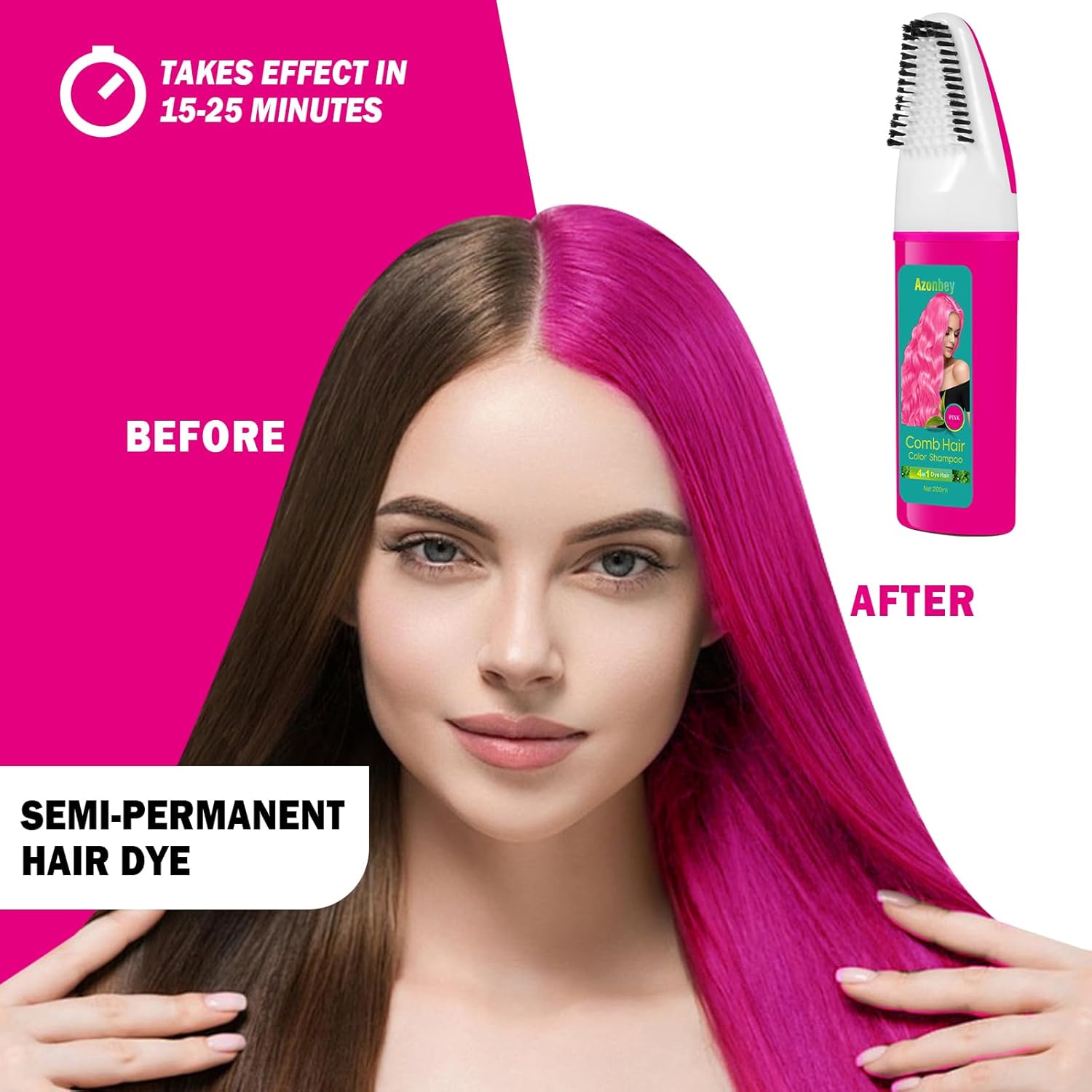 - 3.DIY New Hair Color Style: Natural extracts can effectively dye your hair 5 Color of Black,Brown,Linen, Purple,Pink in minutes. Just keep your hair dry, and apply the shampoo from hair roots to tips, wait 25-30 mins and wash it cleanly, the coloring hair effect is natural and charming.The Comb Hair Color Shampoo will give you what you want.
