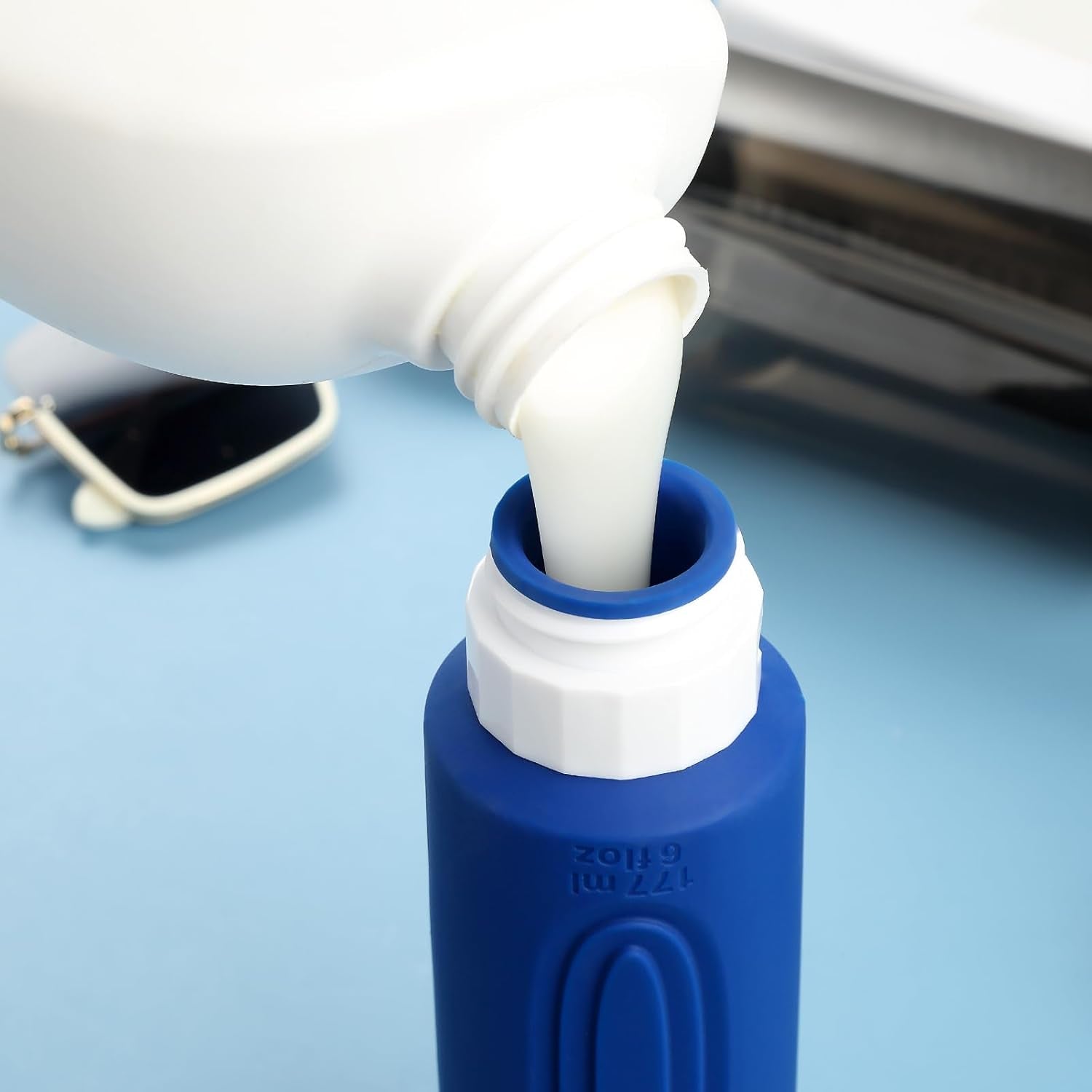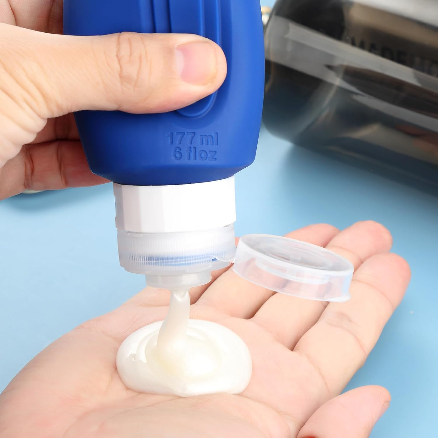 - Oversize 6oz travel bottle: Featuring a PVC toiletry bag, these travel-sized silicone bottles are perfect for storing and dispensing your favorite shampoos, lotions, and other liquids. Designed for convenience and durability, this travel set is a must-have for all your adventures.