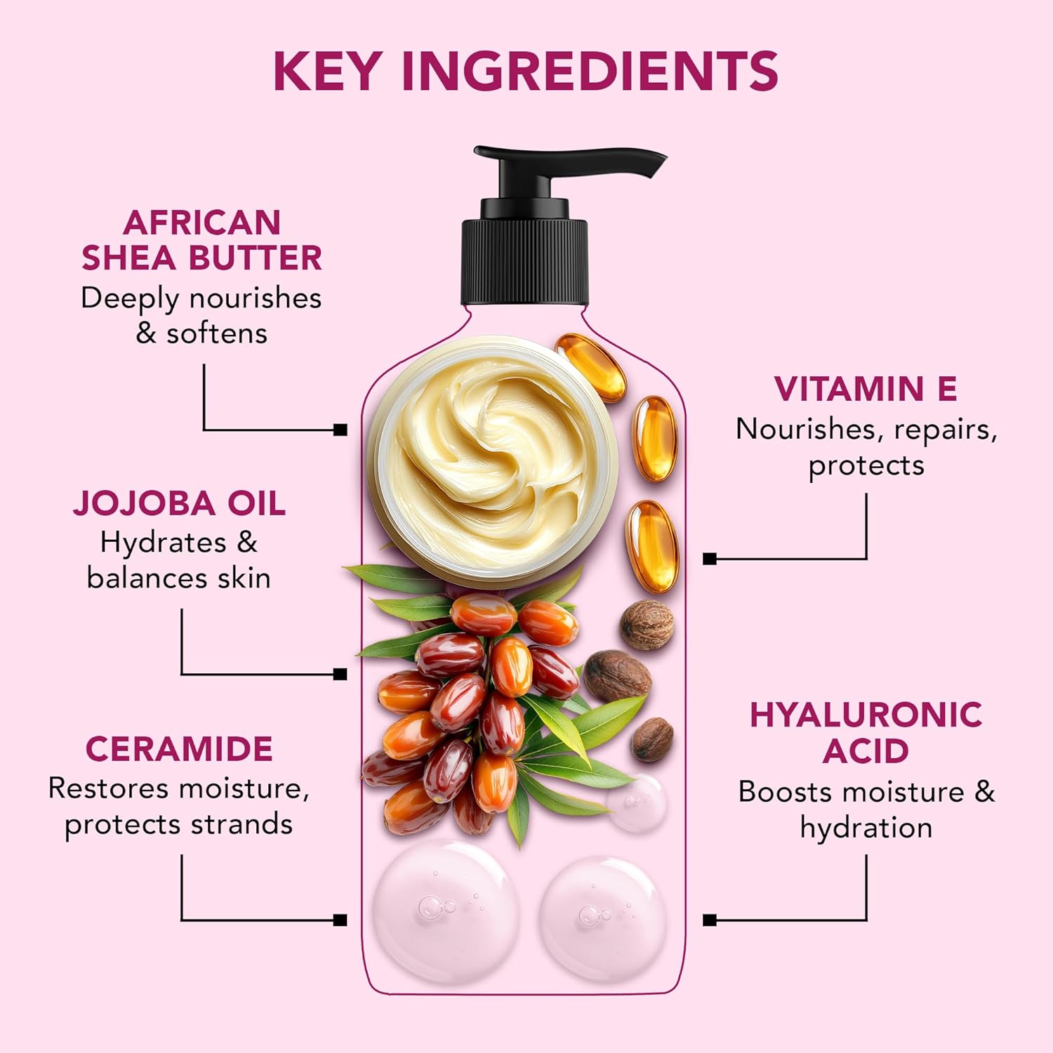- Deeply Moisturizes & Revitalizes Hair – Enriched with African Shea Butter and Jojoba Oil, this shampoo nourishes the scalp, prevents dryness, and strengthens hair from root to tip.