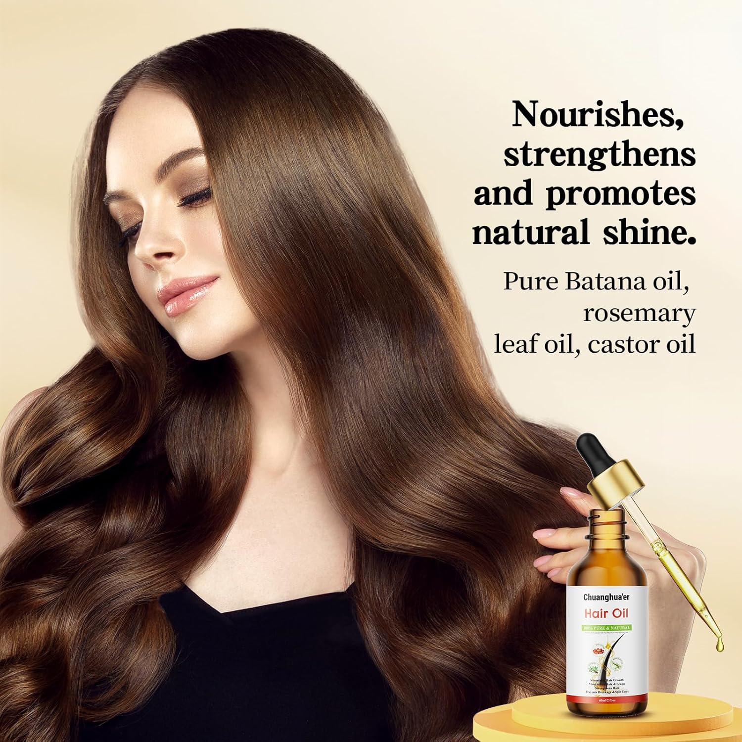 - HAIR OIL FOR ALL HAIR TYPES: A powerful organic hair oil blended with Biotin Hair Oil, Batana Oil, Rosemary Oil, Peppermint, Castor Oil ingredients to help restore volume to fine hair. This premium hair oil also combines hair growth promoting Biotin Oil, Hair Growth Promoting Batana Oil, and Castor Oil Organics. It adds an extra layer of protection, nourishes your hair and scalp, and promotes hair growth.