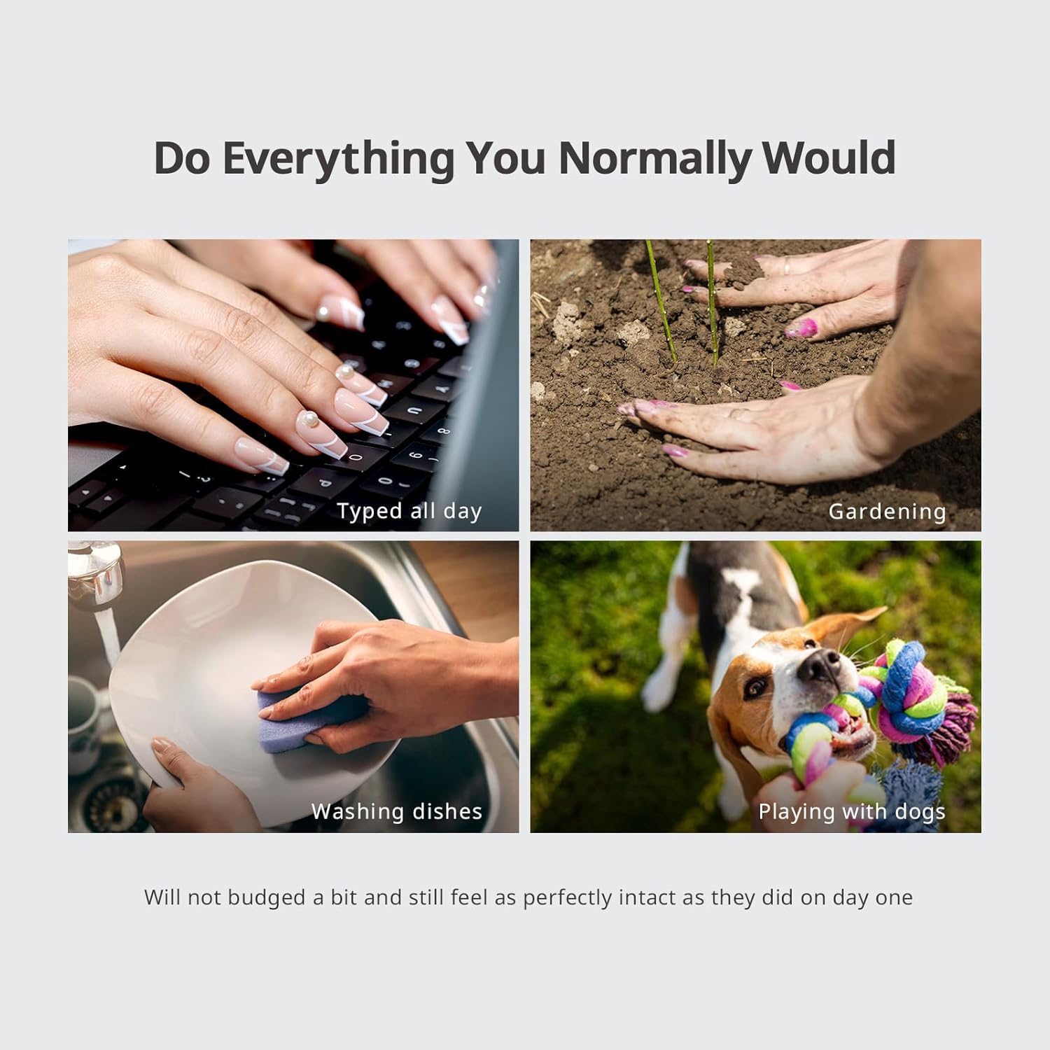 - Live Life Unfiltered: Built tough with builder gel & top coat. Type, garden, scrub, or play with pets – these nails stay chip-free through daily adventures