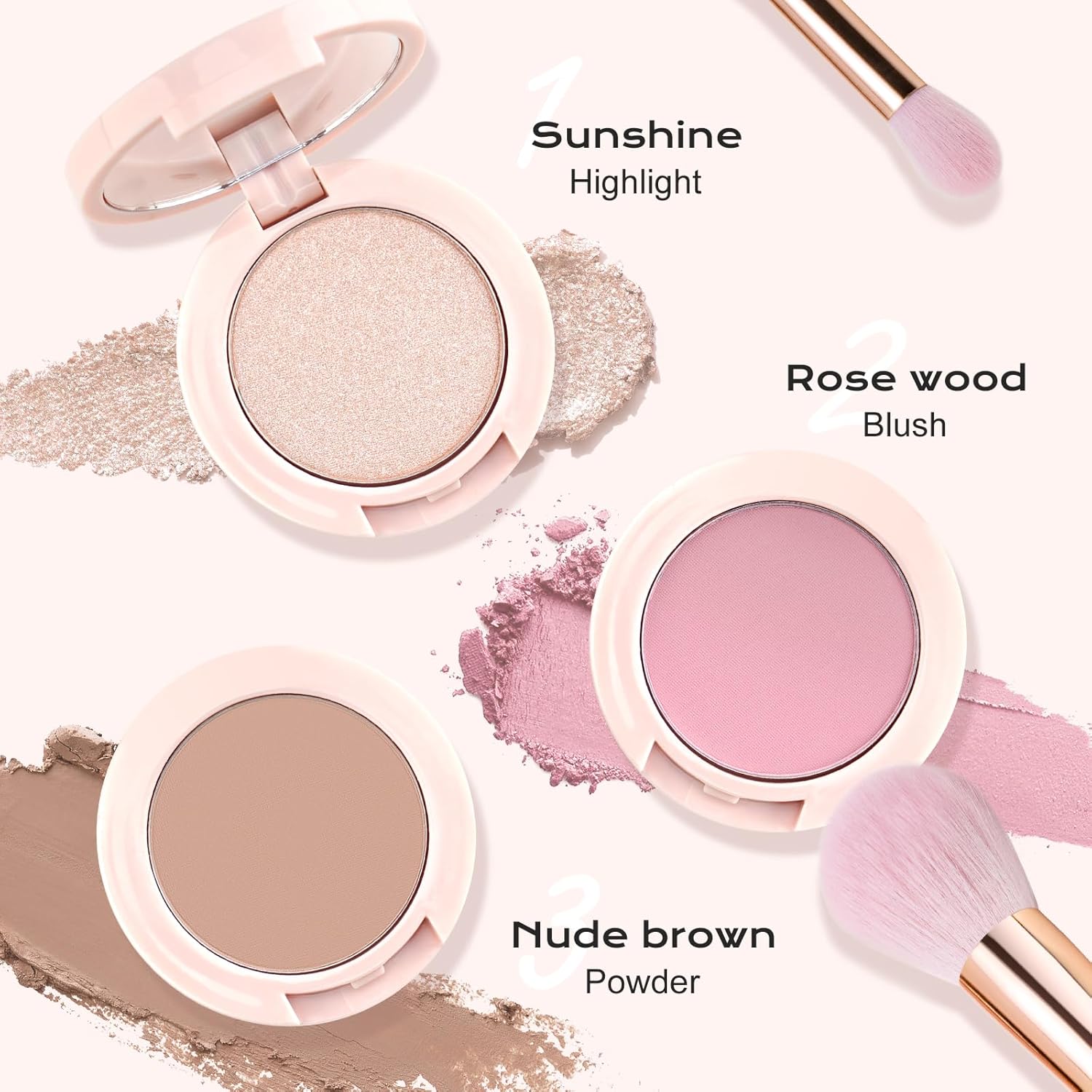 - Beginner-Friendly, Blendable Texture: This travel makeup kit stack of contour powder, blush, and highlighter designed with your skin tone in mind; with 3 colors complimentary hues, look your best from anywhere in the world.
