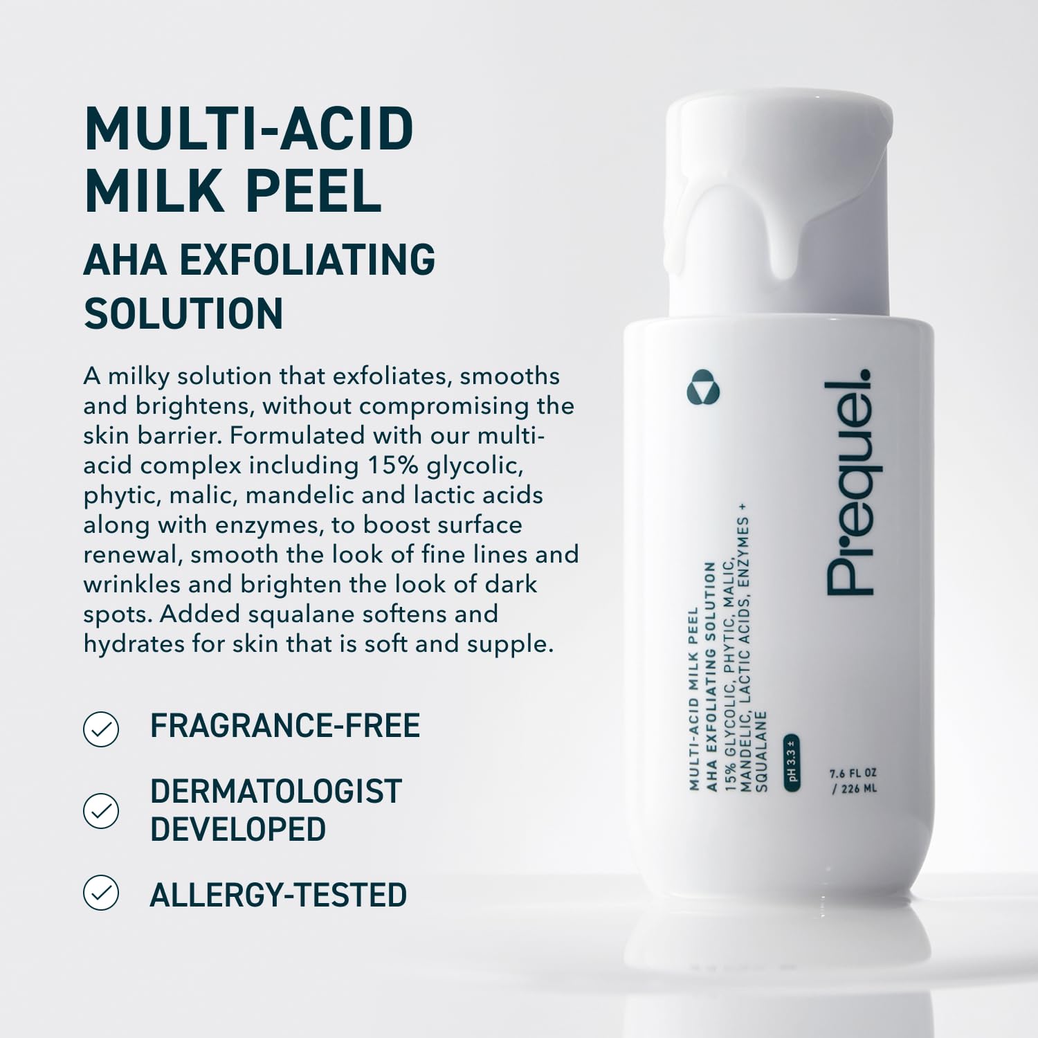 - HOW TO USE: Shake well, dispense a few drops into hands or cotton pad, and apply to face and neck. Do not rinse. Follow with Prequel serum and moisturizer. Start slowly with 1-2x per week to monitor skin sensitivity. Build up additional uses as tolerated. 7.6oz bottle. Prequel Skin, Dermatologist Developed, Clinically Tested, Proven Skincare