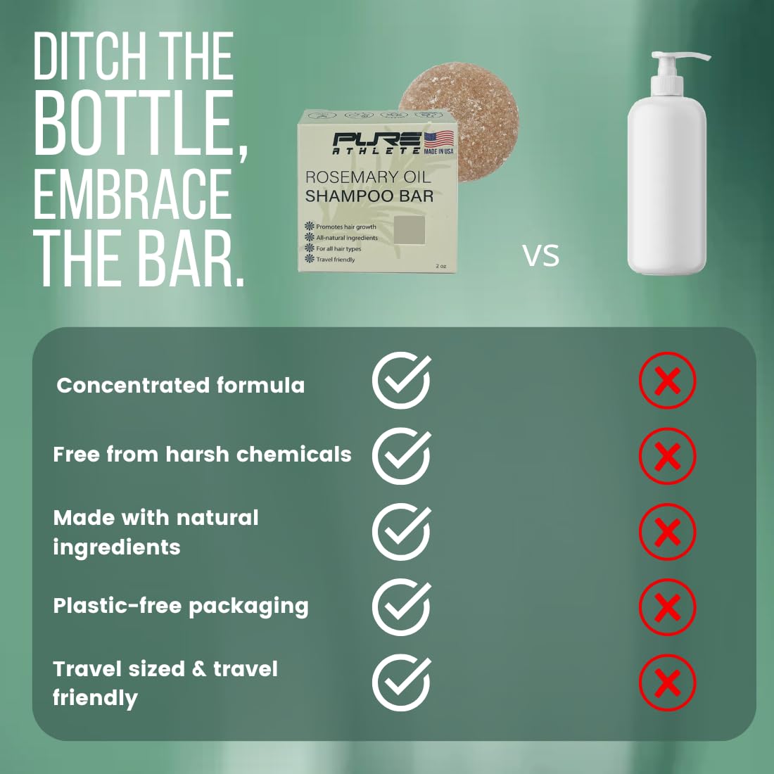 Pure Rosemary Natural Shampoo Bar - Volumizing, Strengthening, Thickening Solid Hair Growth Soap, Made in USA with Rice Protein, Caffeine, Castor Oil, and Ginger, Organic for Women, Men