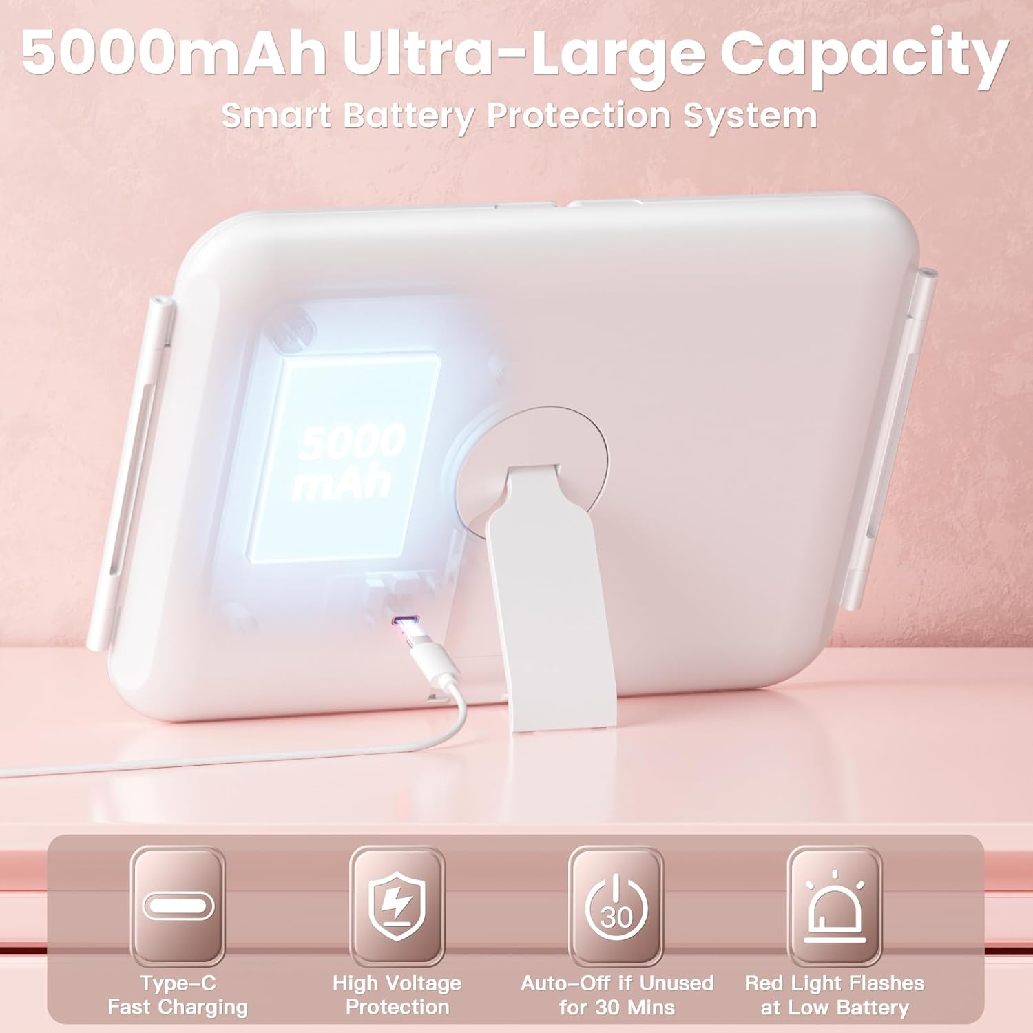 - Rechargeable and Built to Last: Designed as a dependable compact mirror with light, it includes a 5000mAh lithium battery with Type-C fast charging. Reinforced hinges and a solid base provide long-term durability for everyday desktop application when you are in office, at home, or travelling and more.