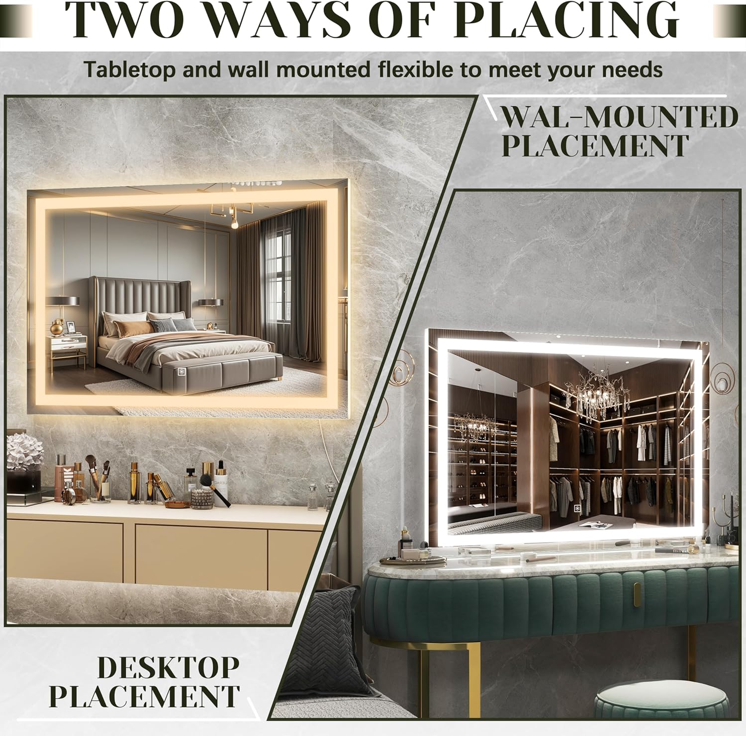 - 【Extra Large & Space - Saving Design】 View full-body outfits & makeup details in one glance with our 30% larger viewing area than standard mirrors. Our 32" x 22" LED vanity mirror also offers a space - saving dual - installation option. The lighted mirror comes with a detachable base for desktop use or wall mounting.