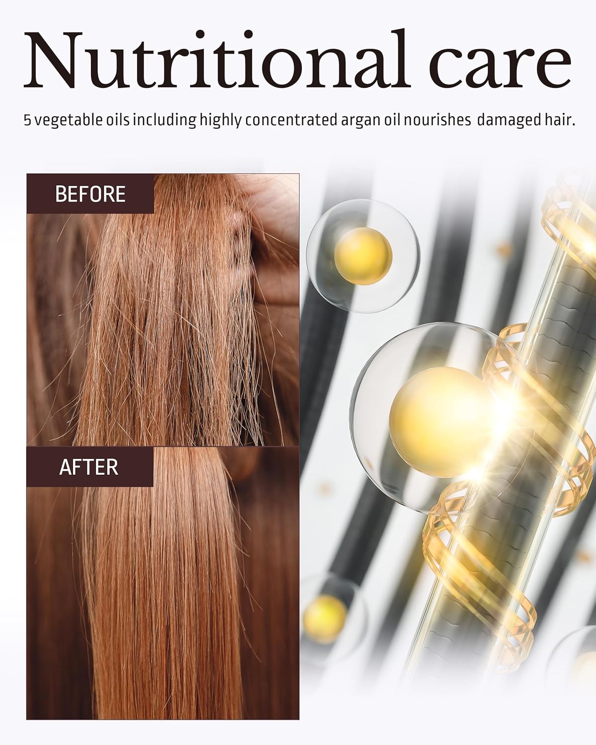 - MOISTURIZING, NOURISHING & STRENGTHENING: The powerful synergy of milk protein and argan oil provides an all-in-one solution for hair care. This hair oil not only moisturizes and strengthens your hair but also delivers essential nutrients, leaving it soft, smooth, and well-cared-for without weighing it down.