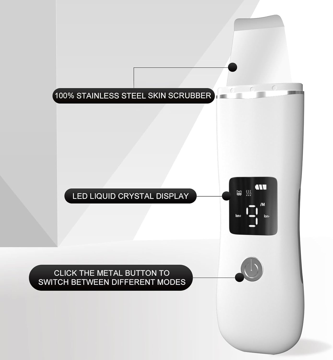 - 4 Modes Skin Spatula - Experience comprehensive skincare with this multifunctional scrubber. Its 3D curved, stainless steel spatula effortlessly navigates your face, even around tricky areas, removing build-up and debris. Simply wet your face and glide the spatula for a spa-like experience.