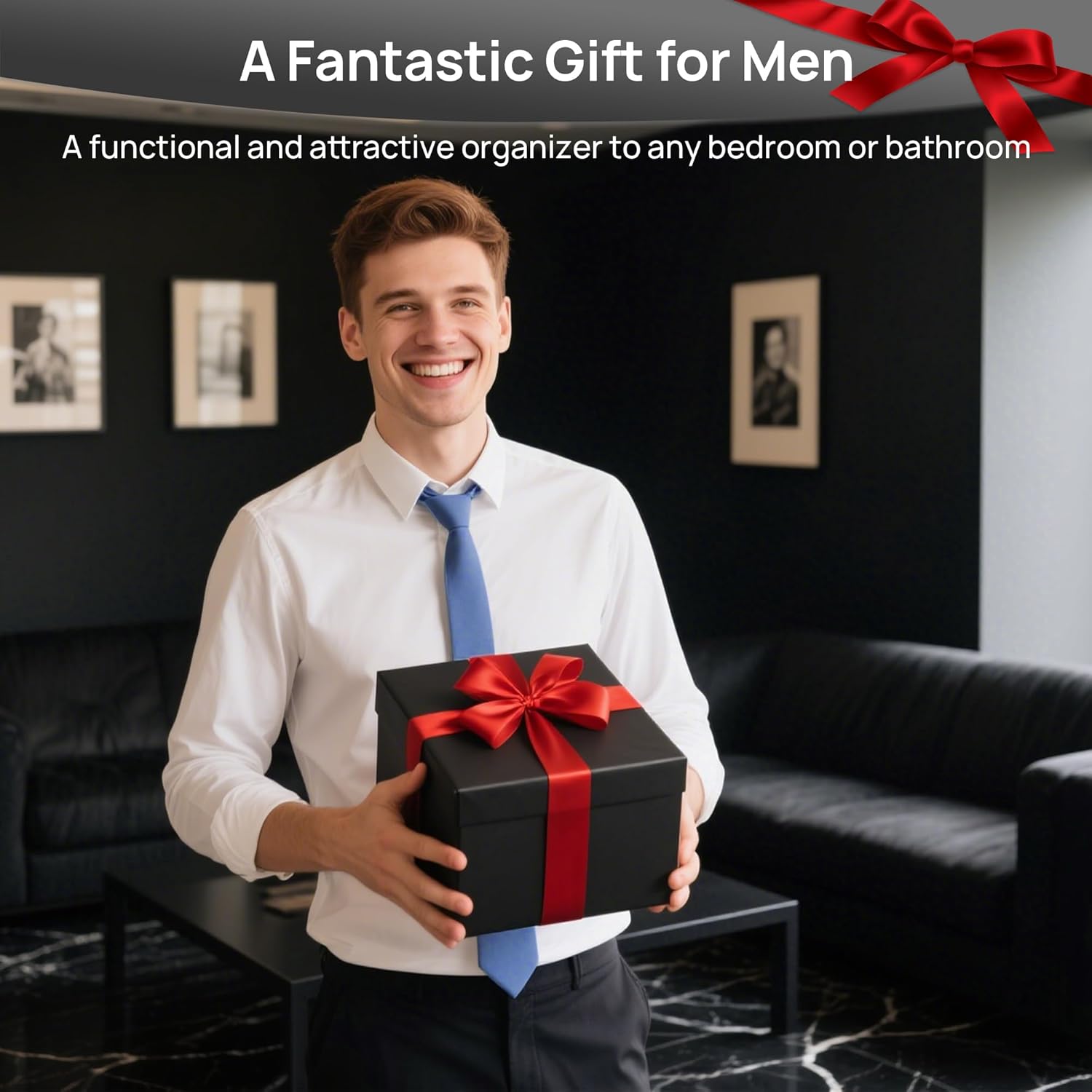 - [An Fantastic Gift for Men]Unique black organizer combines durability with a stylish and modern appearance.This organizer is the perfect choice as a gift to boyfriend,son,husband, dad,and friends .The fashionable design is compatible with the decoration of any room.