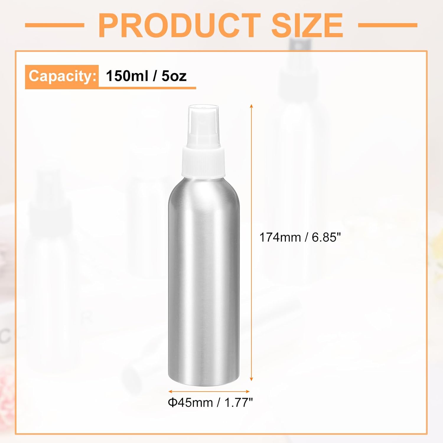 HARFINGTON Aluminum Fine Mist Spray Bottles 150ml/5oz Metal Small Liquid Alcohol Refillable Travel Container with White Plastic Nozzle Cap for Perfume Skincare Cosmetic Storage Bottle