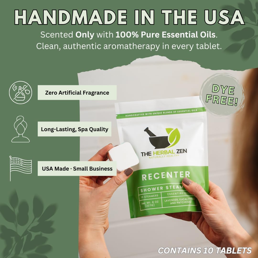 Recenter Shower Steamers Aromatherapy with Lavender and Eucalyptus Essential Oils, Aromatherapy Shower Bombs, Self Care Gift, Birthday Gift for Women, Bath Steamer for Women and Men