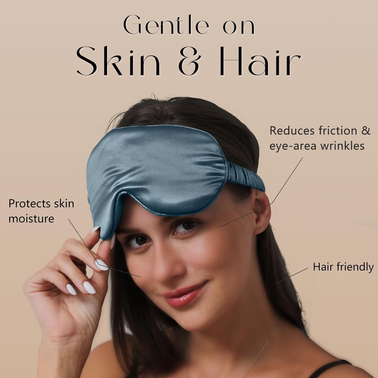 ZIMASILK Adjustable 22 Momme 100% Mulberry Silk Sleep Mask, Upgraded 3D Contoured Cup Eye Mask for Sleeping, Super Soft & Breathable Blindfold, Blackout for Deep Sleeping (Blue Haze)