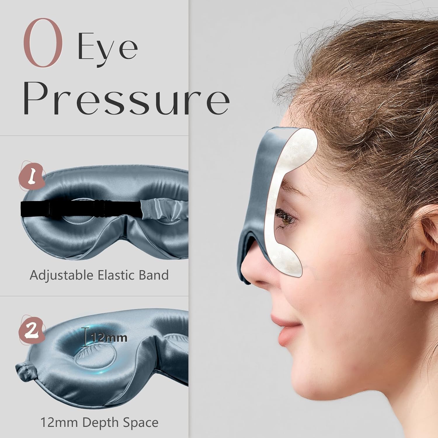 - ✅3D Contoured Design, Comfortable Fit: Features an ergonomic 3D contoured design that perfectly fits the contours of your face, no pressure on the eyes or nose, silk sleep mask provides a barely-there feel.