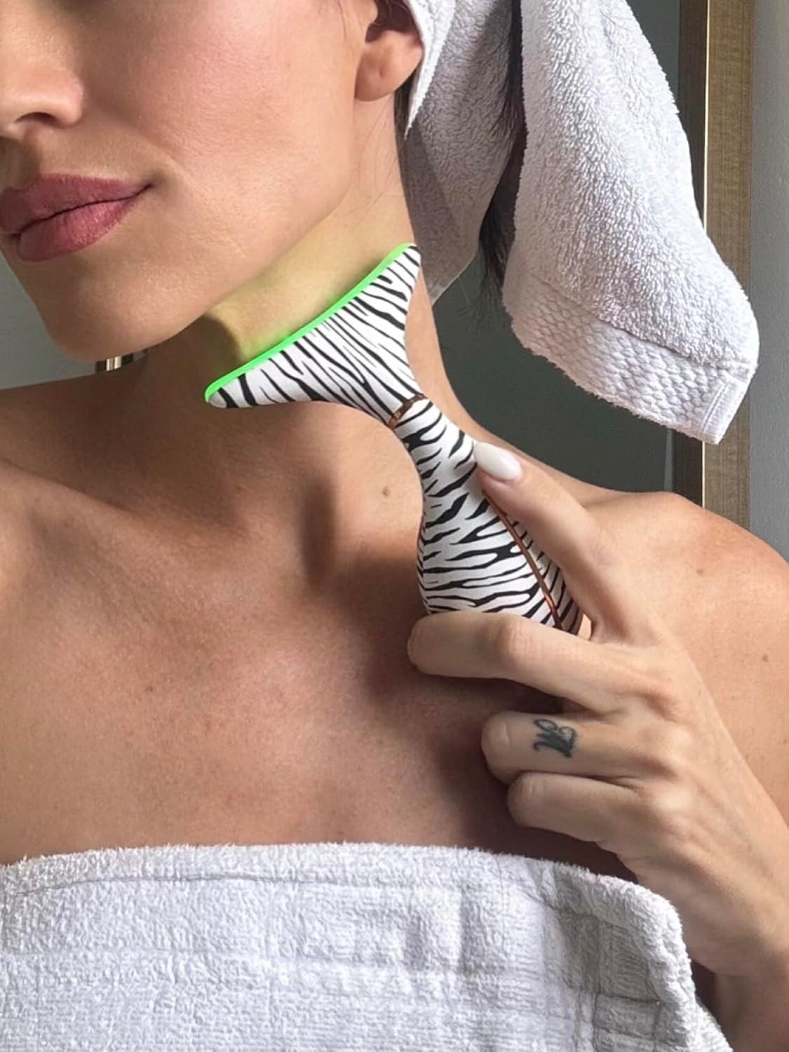 - Glo24k red light beauty device for face and neck—a soothing, at-home step for jawline and neckline care as part of your daily routine.