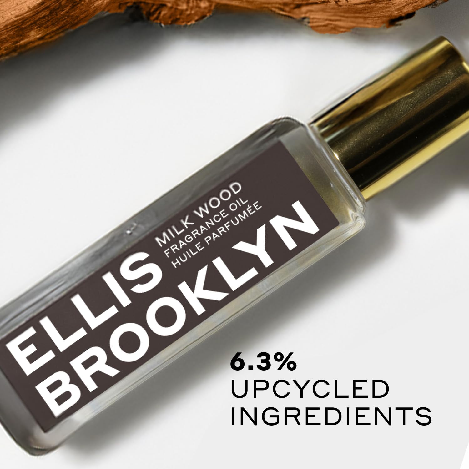 Ellis Brooklyn Milk Wood Perfume Oil Roll-On for Women – Sandalwood & Amber Musk Perfume Oil - Notes of Coconut Milk, Freesia & Bergamot– Long Lasting Fragrance, Travel-Friendly Rollerball, 15ml