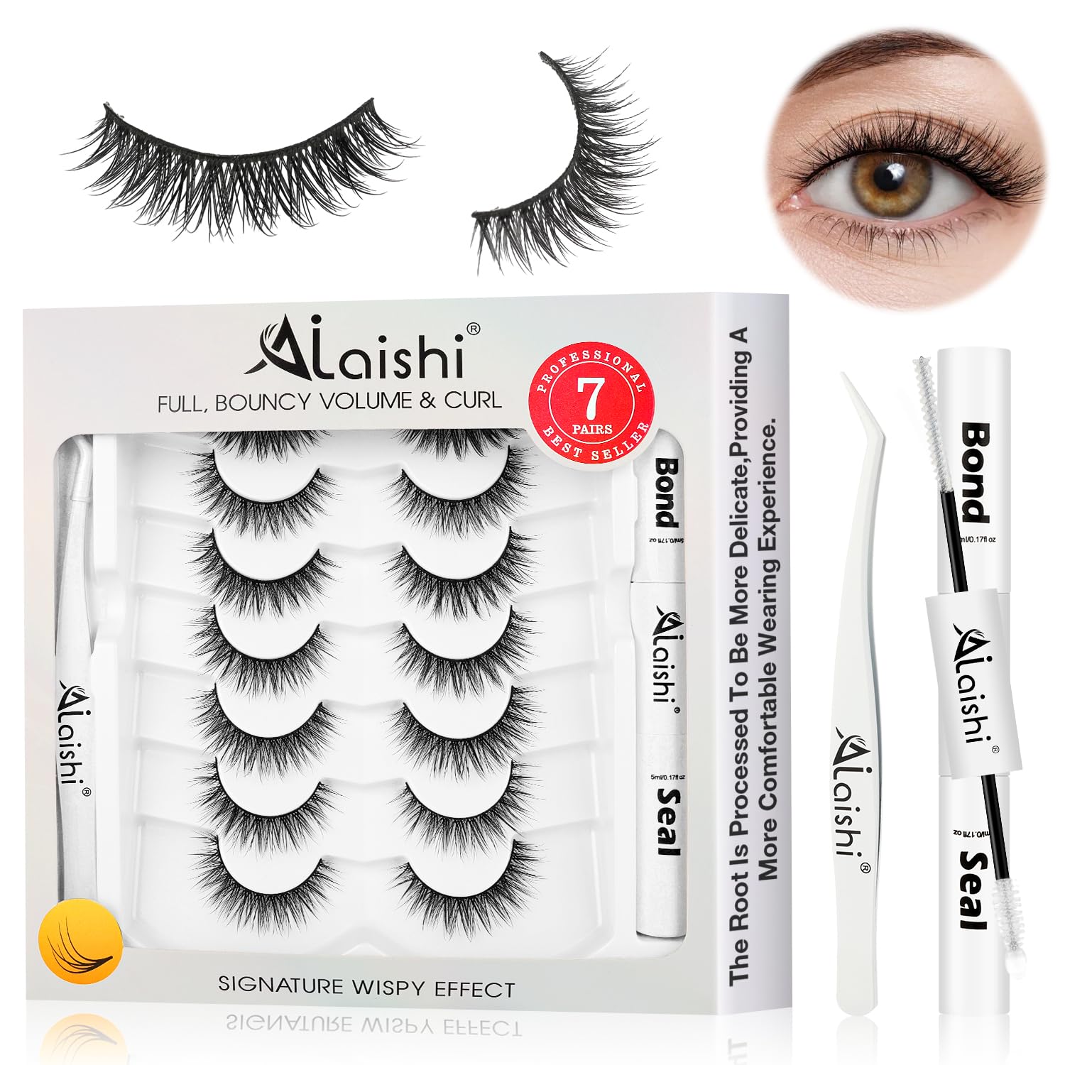- 7 Pairs Natural-Looking Lashes Kit: Endless Beauty! Beginner-friendly false eyelashes with bond + seal + tweezer included! Achieve natural-looking wispy lashes in minutes – easy strip lashes with flexible thin band for seamless blending.