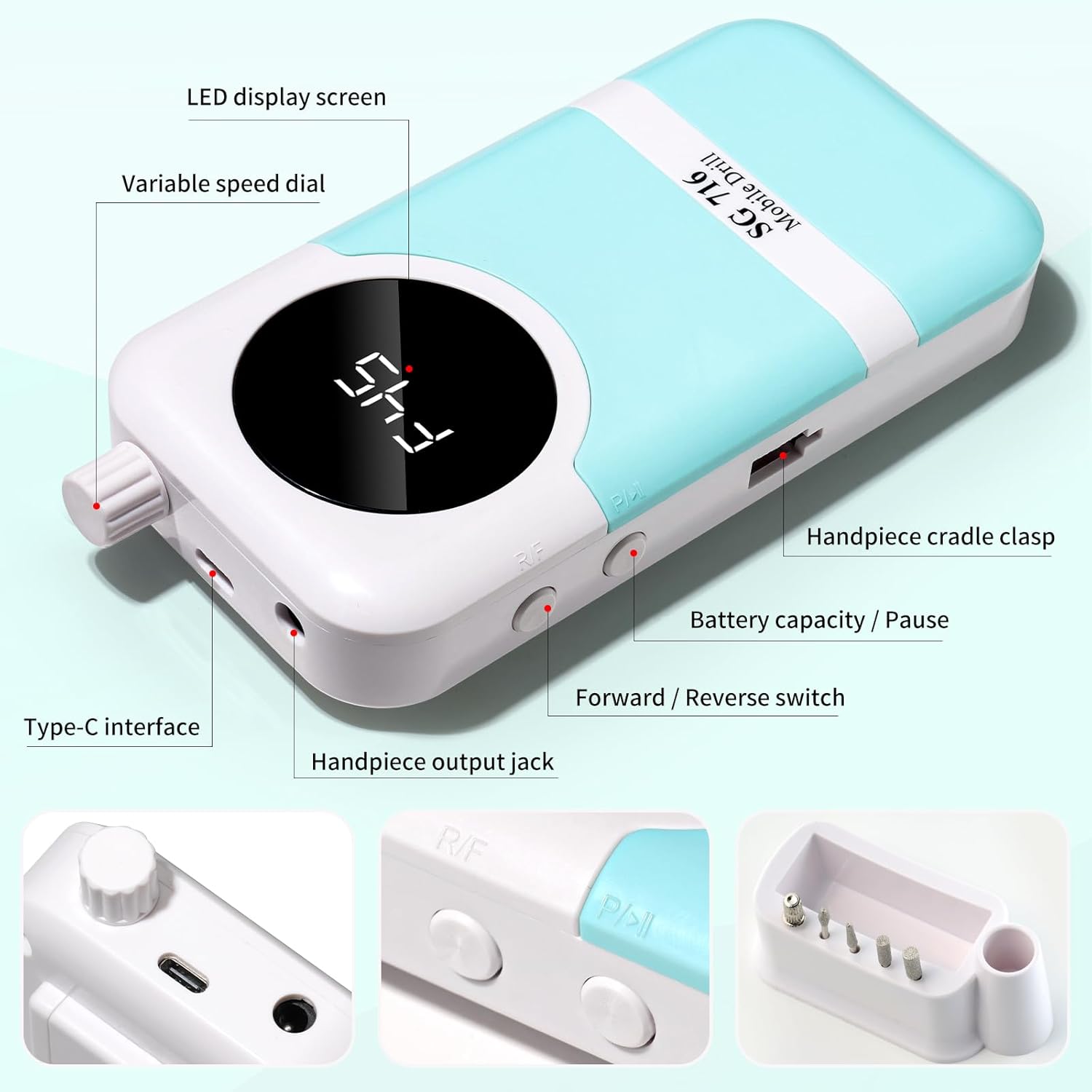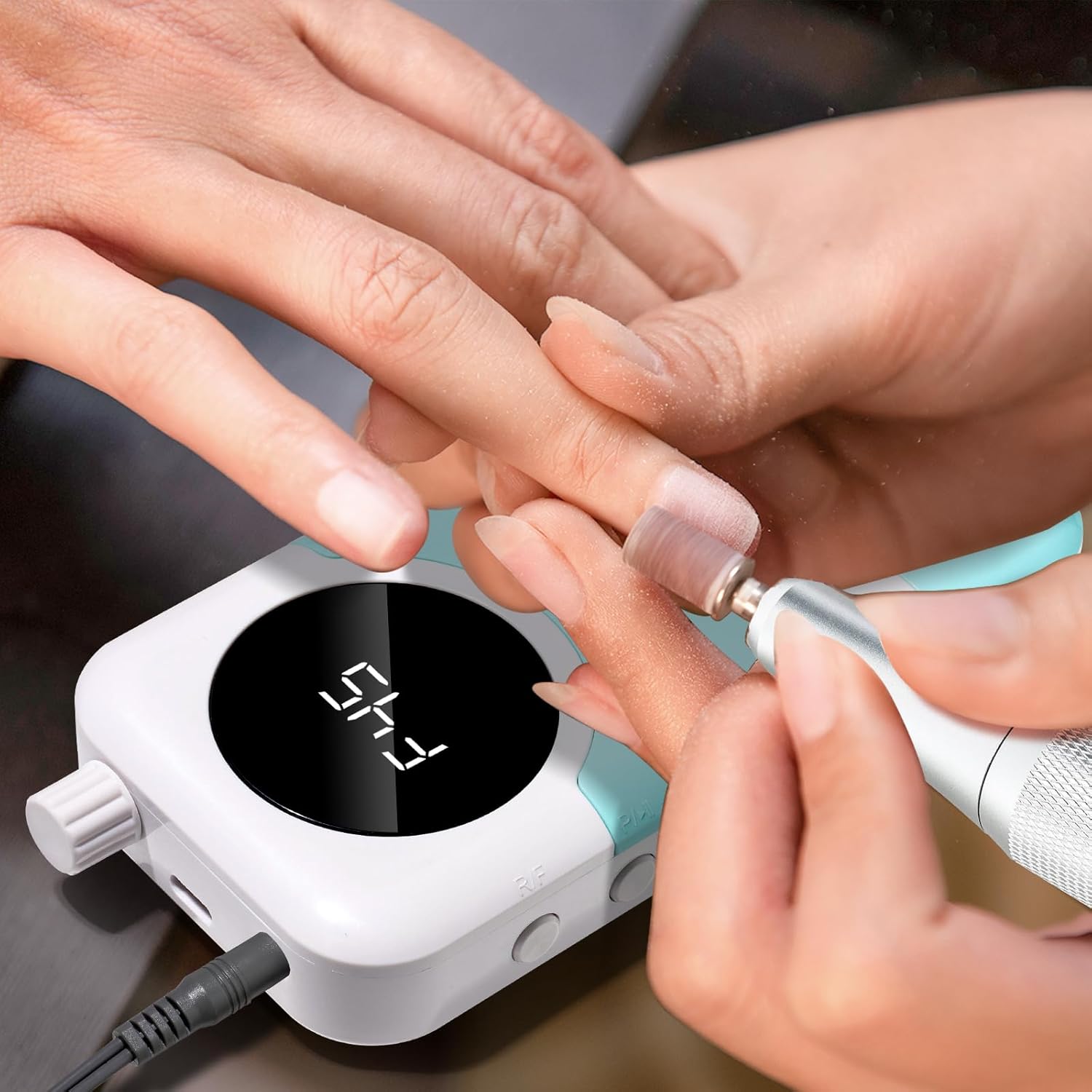 - 【Rechargeable Nail Drill】This portable nail drill built-in 2000mAh high-grade lithium-ion battery with just about 3 hours of charging,can be used for up to 8-10 hours.The smart LCD screen will display the rotational speed and battery remaining capacity,you can use it without worry when styling your nails.