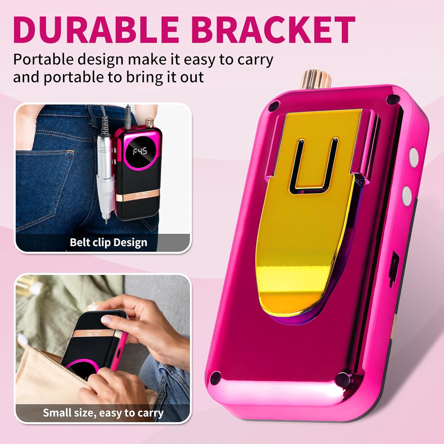 - 【Rechargeable Nail Drill】This portable nail drill built-in 2000mAh high-grade lithium-ion battery with just about 3 hours of charging,can be used for up to 8-10 hours.The smart LCD screen will display the rotational speed and battery remaining capacity,you can use it without worry when styling your nails.