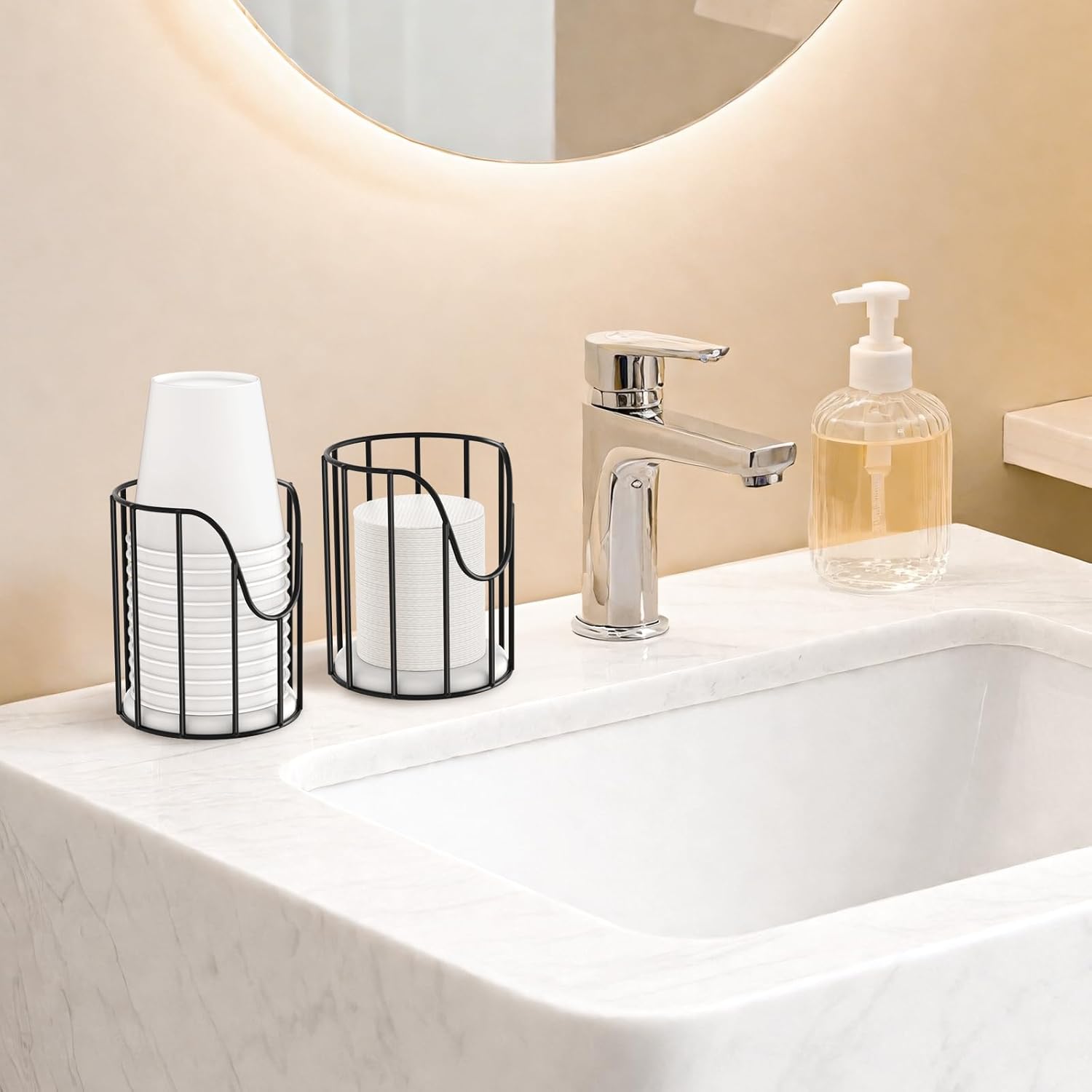 - Multi-Scene Application: With a compact size, Luxspire bathroom cup dispenser 3 oz fits anywhere. It can be placed in the bathroom, kitchen, living room, bedroom, as well as in restaurants, coffee shops, and other places for easy cup access anytime.