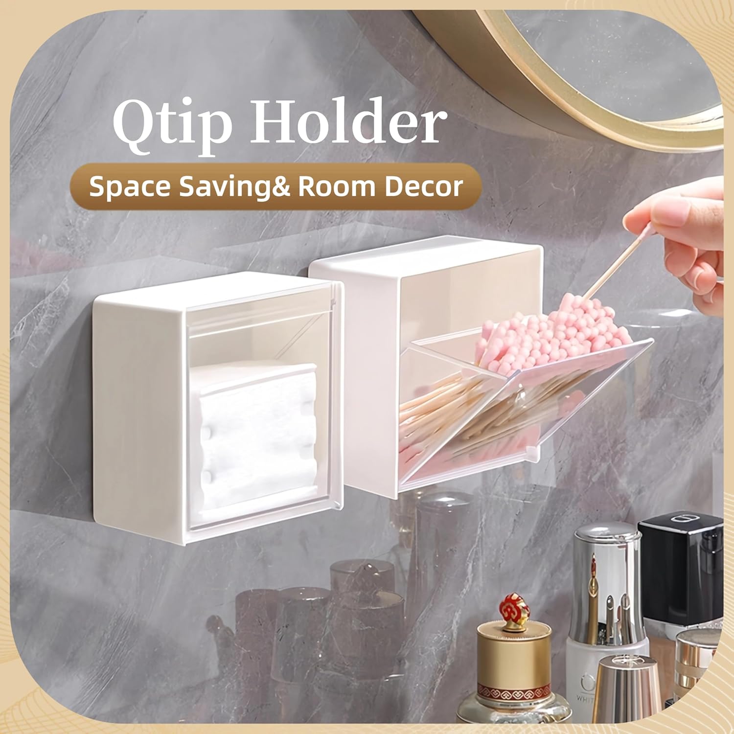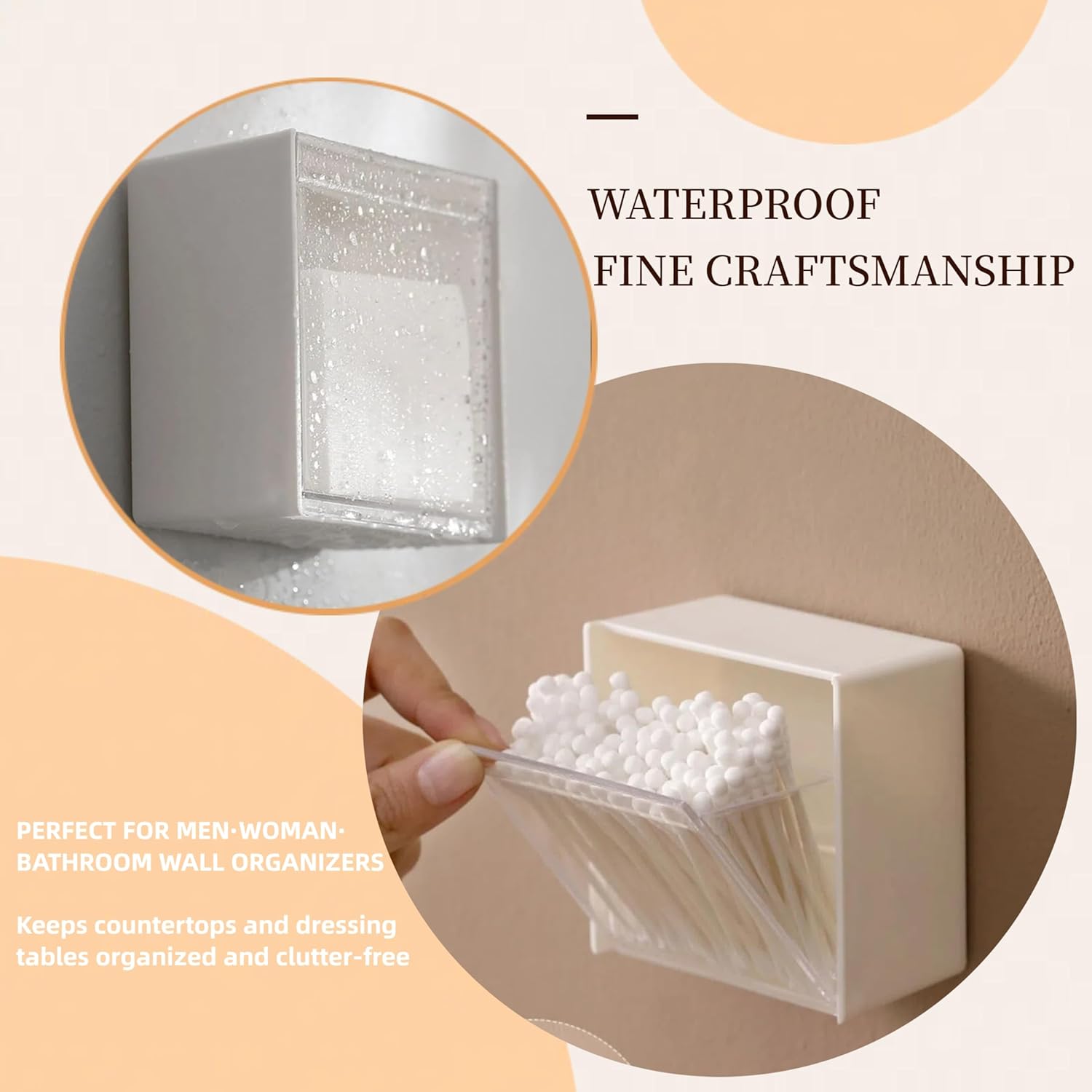 - 【Simple and Modern Bathroom Organization】- Includes 2 qtip holders made of HIPS plastic , wall-mounted flip small organizer and storage keep form dust.It is particularly popular with city dwellers, as one of dorm room essentials for college students, a room decor or teen girls boys.