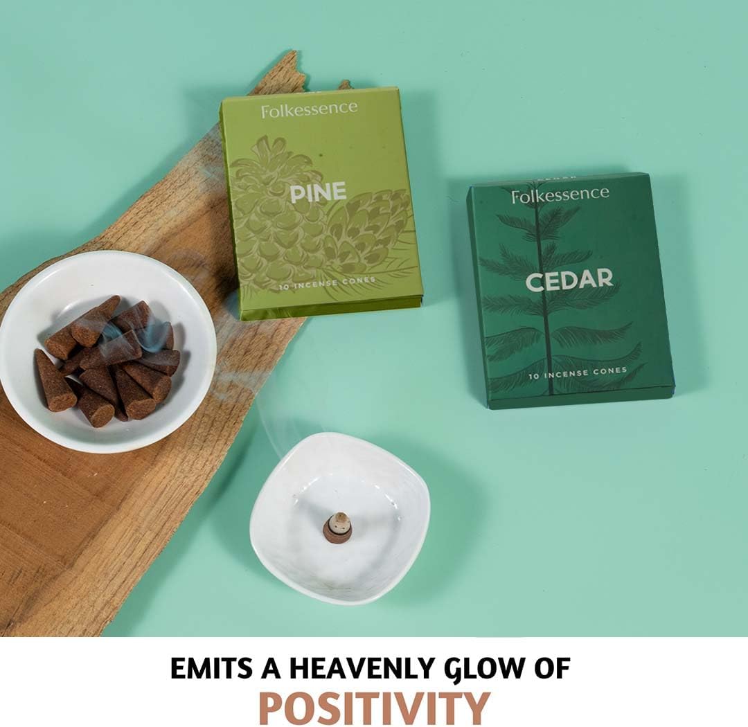 Folkulture Incense Cones for Waterfall | 20 Pc Incense Cone Scented | 2 Fragrance Cone-Insenses - Pine & Cedar | Natural, Non Toxic | Pine & Cedar Inscents-Cones | Relaxing, Meditation, Spiritual
