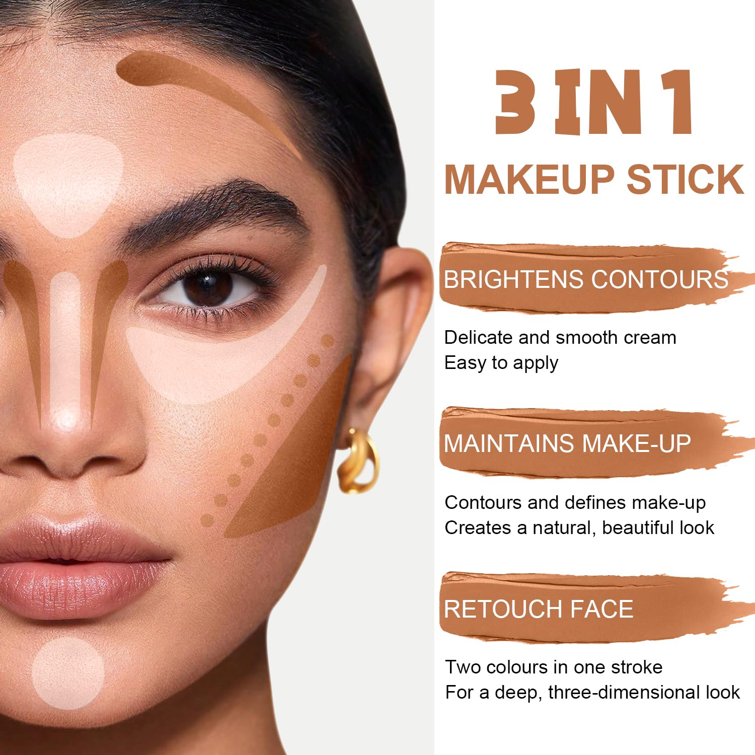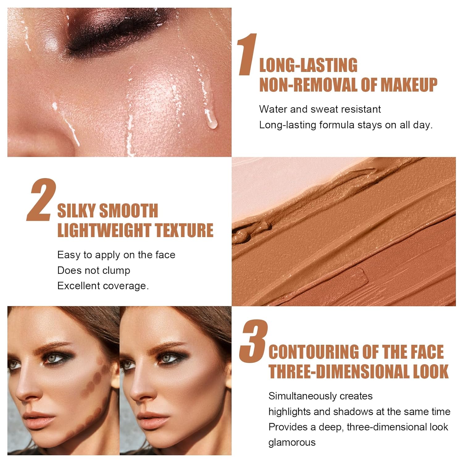 - 【Contour Stick Makeup Kit】The Double-ended Face Shaping Stick Set contains blush, bronzer contour and highlighter, and the creamy texture of the contour stick for face makes it easy to apply and blend seamlessly into your skin for a natural finish.