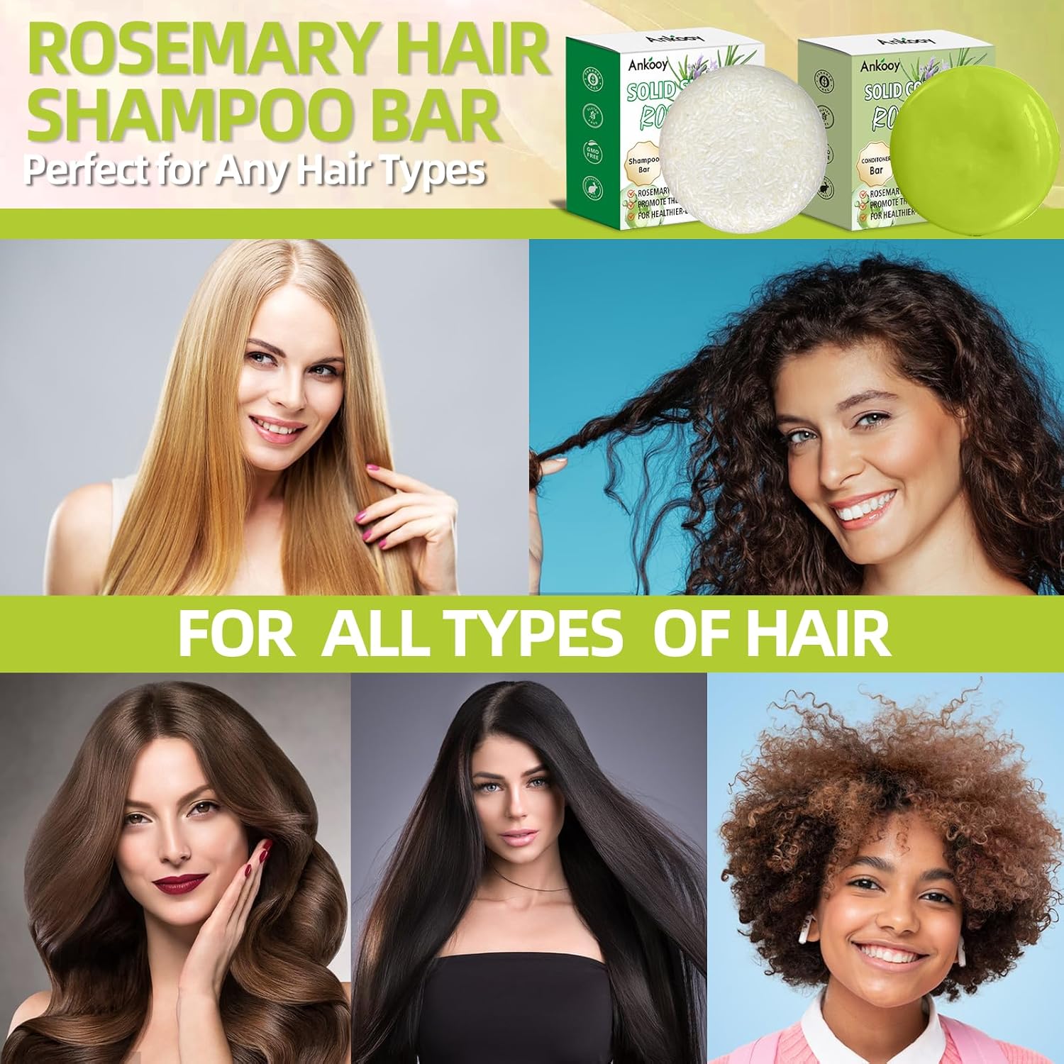 - Natural Shampoo & Conditioner Bars – This 2-pack set features a plant-based rosemary oil shampoo bar and matching solid conditioner, crafted with natural ingredients for a clean, sustainable hair care routine.