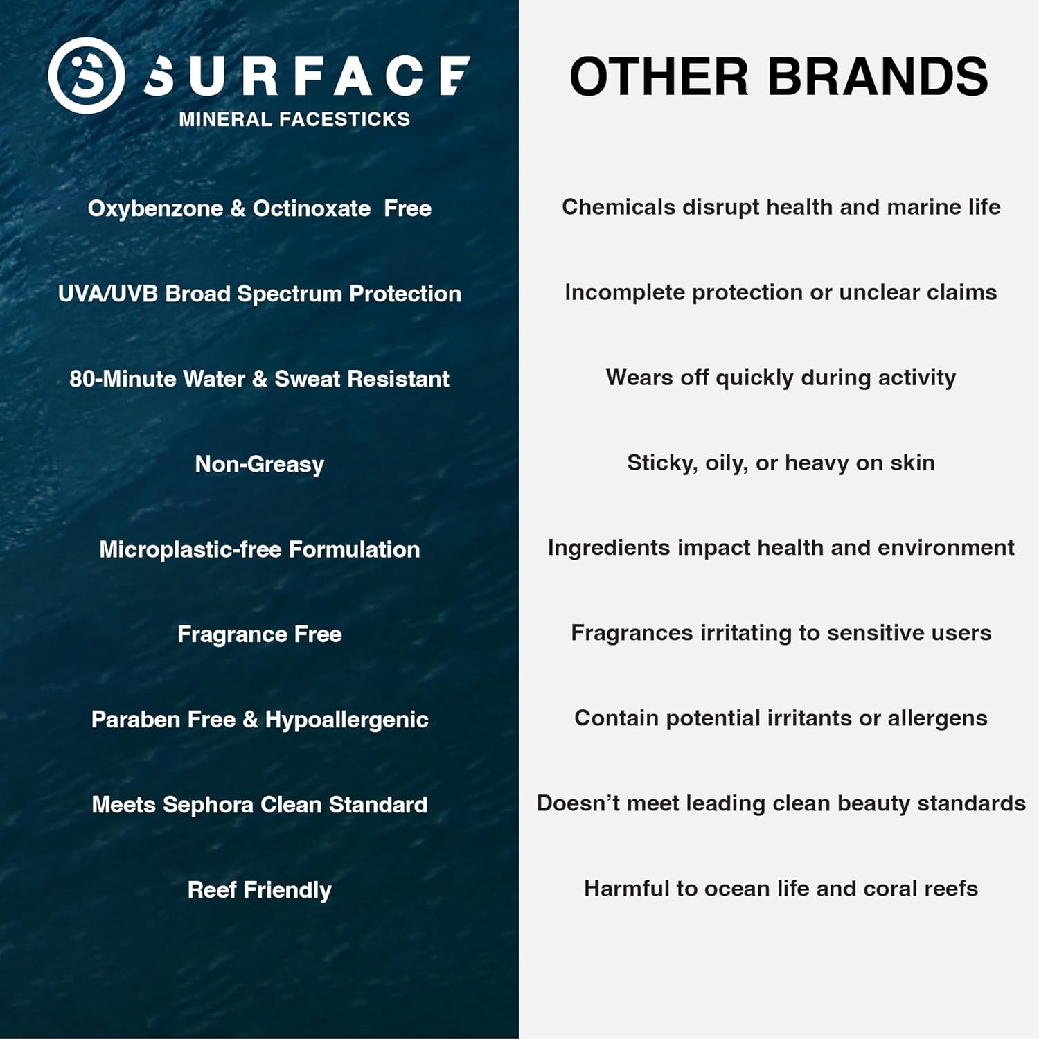 Surface Mineral Sunscreen Face Stick SPF 60, Lightweight Non-Nano Zinc Oxide Formula, Reef Friendly, Broad Spectrum UVA UVB Protection, Water Resistant Sun Care for 80 Minutes, Clear, 0.5oz